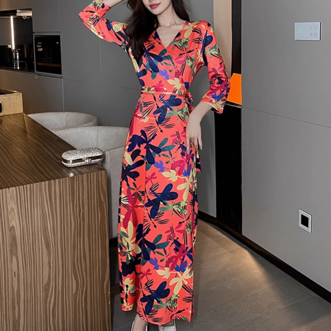ドレス ワンピース パーティー 結婚式 二次会 披露宴 演奏会 発表会 ステージ キャバ ラウンジ クラブ ロング 7分袖 Vネック 襟なし スリム 細身 Aライン リボン ウエストリボン スリット 薄手 可愛い きれいめ シンプル 大人可愛い 上品 おしゃれ レトロ エキゾチック エレガント モダン 主役級 存在感 とろみ感 抜け感 クラシック ゴージャス エレガント セクシー 華やか 花柄 フラワー 格子柄 イベント 二の腕カバー 美脚 脚長 高見え 格上げ 春 夏 2XL S M L XL ブラック