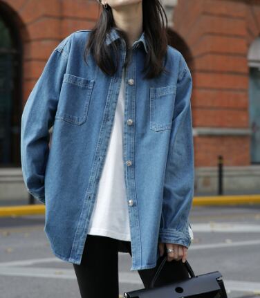 爽やかなブルーが目を引くデニムシャツ。オーバーサイズが可愛いオーバー債アイテムですず。デニムジャケットほどしっかりかっちりしていないので、ラフなコーディネートに仕上げたい時におすすめ。メンズライクなコーディネートに仕上げても◎