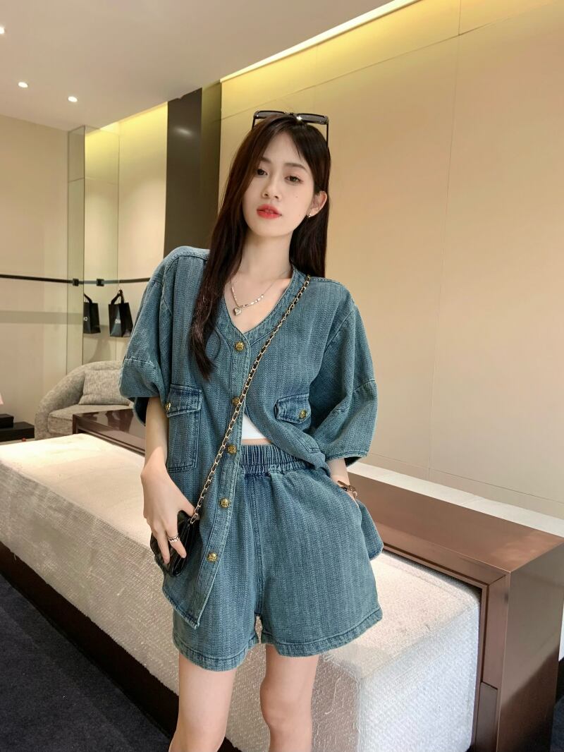 セットアップ 2点セット レディース ジャケット パンツ ボトムス デニムジャケット ショートパンツ ワイドパンツ ロング 半袖 Vネック ワイド ポケット ハイウエスト 前開き デニム ブルーデニム かわいい 大人可愛い カジュアル おしゃれ かっこいい レトロ ラフ ガーリー 個性的 クール 無地 夏 学生 デート お出かけ 休日 コーデ 楽ちん 着回し S M L ライトブルー