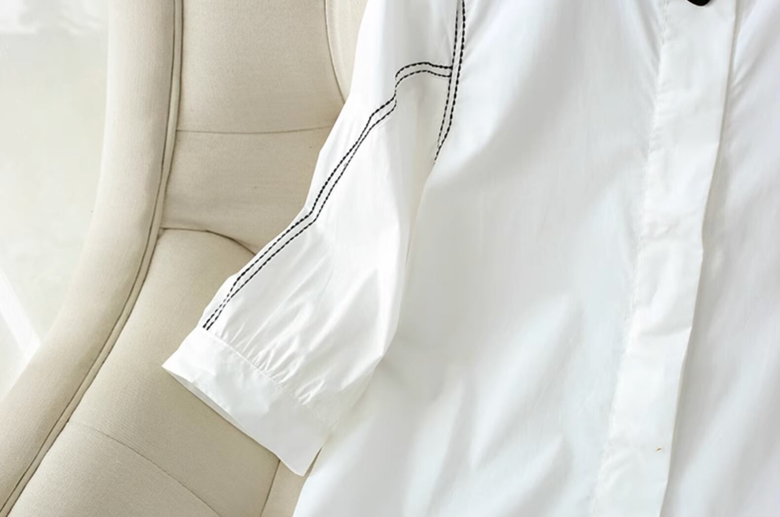 ブラウス レディース トップス シャツ ステッチ 7分袖 ラウンドネック ボタン 綿 かわいい 大人可愛い きれいめ シンプル カジュアル 上品 おしゃれ レトロ ラフ ガーリー ルーズ ラブリー キュート ハート 春 夏 ママ オフィス ビジネス OL 通勤 学生 デート お出かけ お泊まり アウトドア イベント リゾート 旅行 海 プール 公園 女子会 休日 バカンス 重ね着 韓国 コーデ 体型カバー 普段使い 着回し レイヤード 清楚 ゆったり フリーサイズ ホワイト
