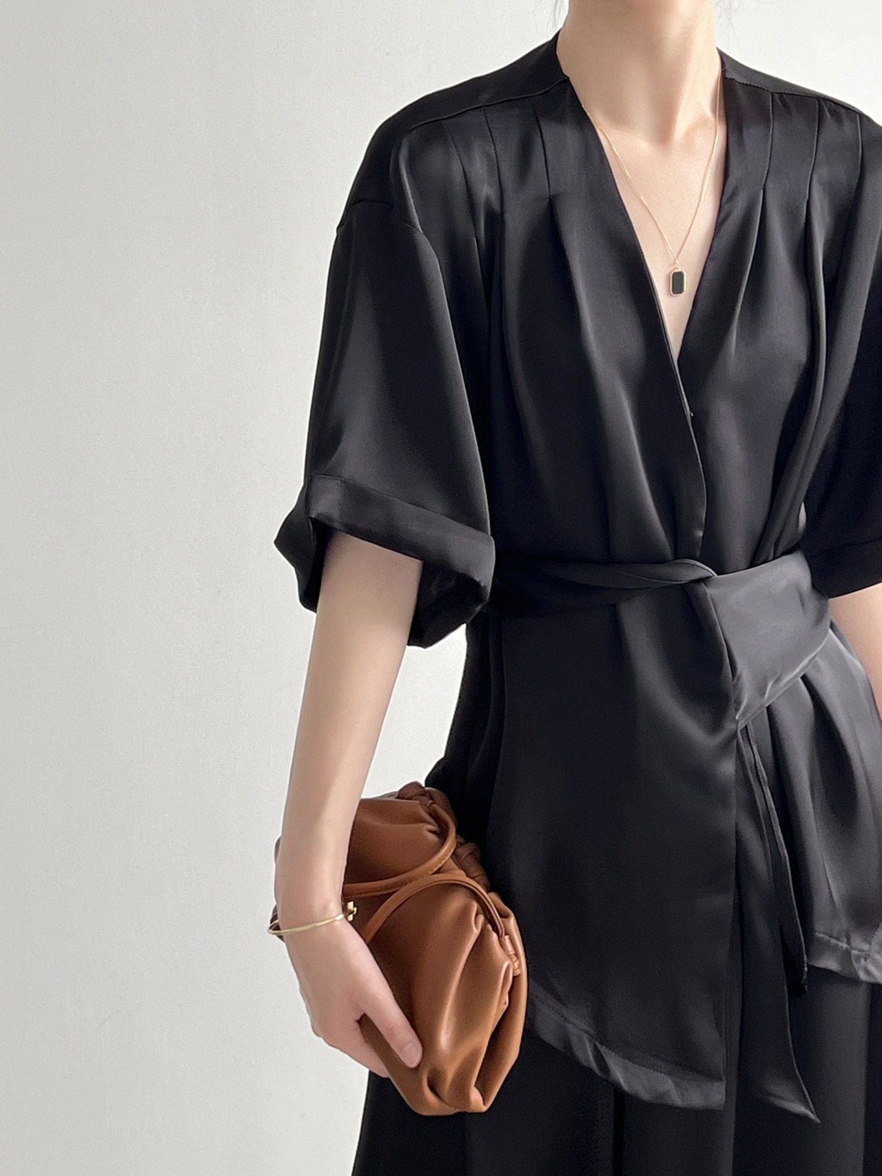 夏のおしゃれはこのセットアップで決まり!大人可愛い印象を演出するセットアップの2点セットです。シャツは合わせVネックが女性らしさを引き立てます。繊細なとろみ感が抜け感と都会的な雰囲気を与え、デートやお出かけにもぴったり。どのカラーも上品でスタイリッシュです。また、着るだけで体型カバーもできるので、自信を持って着ていただけます。ゆったりとしたサイズ展開で、着心地も楽ちん。このセットアップは、きれいめな印象からカジュアルなスタイルまで幅広く対応し、様々なコーディネートに活躍します。今年の夏は、だれとも被らないオシャレを楽しみませんか?
