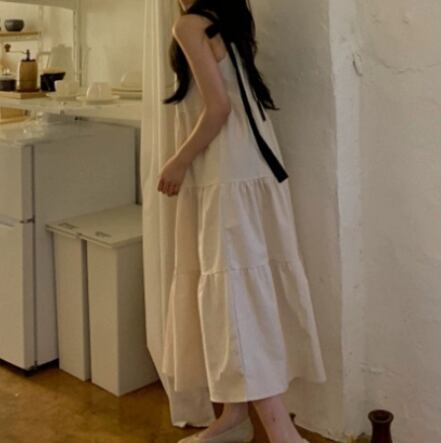 シックなバイカラーデザイン×リボンが可愛らしいノースリーブワンピース。夏にぴったりの涼しげな一枚です。無地なので胸元にネックレスを添えて華やかさをアップしても◎夏らしいサンダルと合わせても可愛いです。