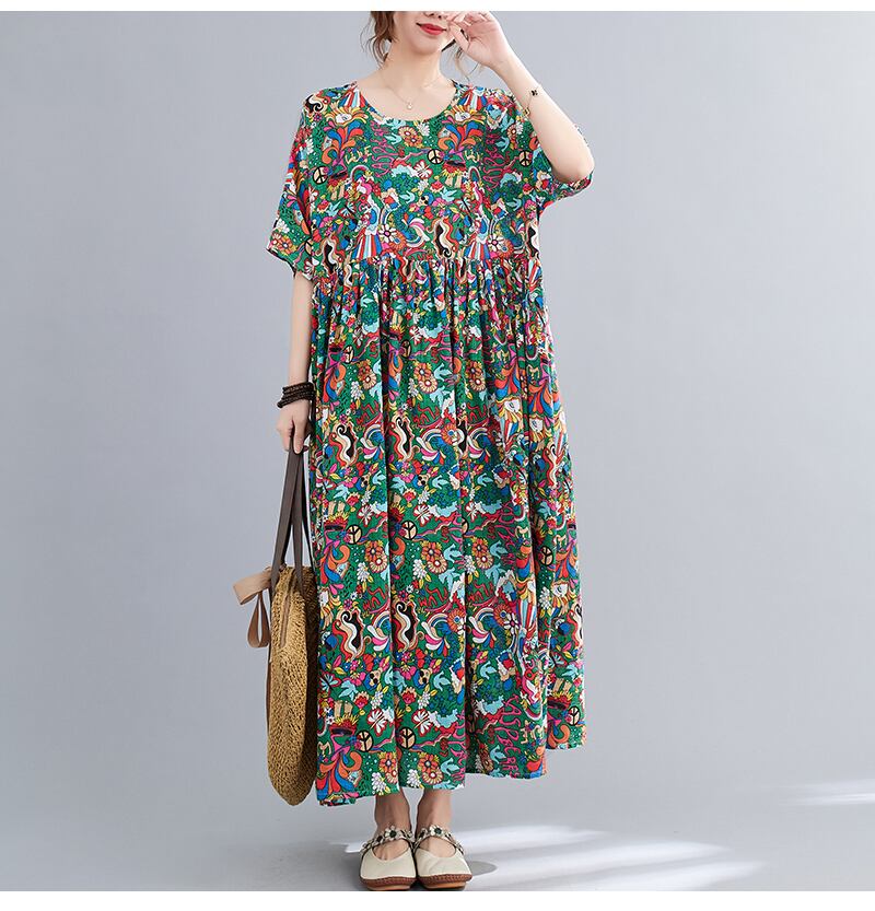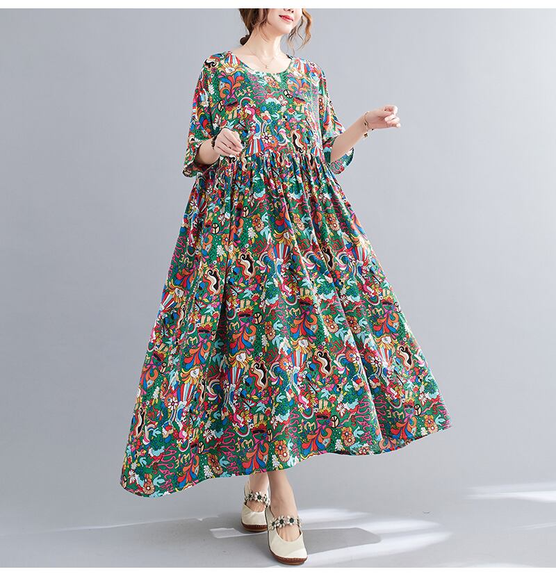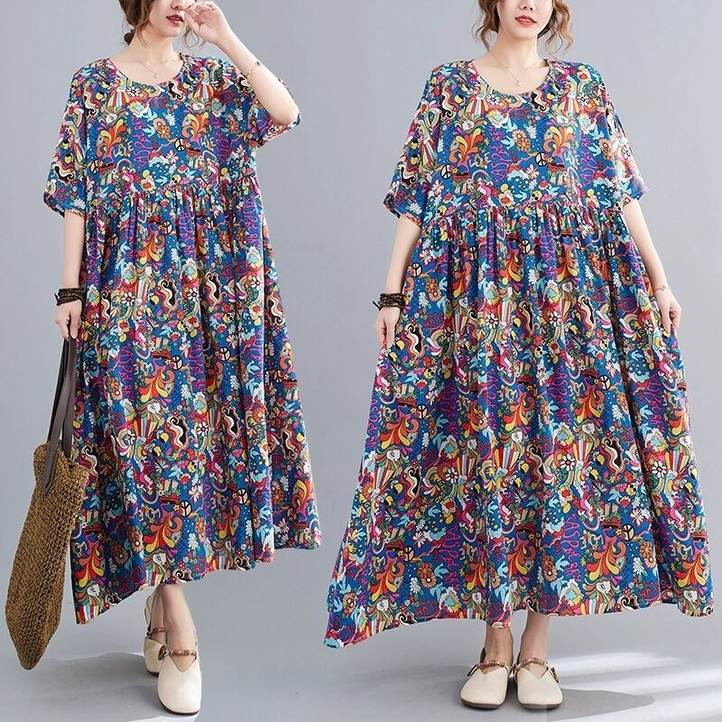 レディース ワンピース マキシワンピース フレアワンピース ロング マキシ 5分袖 五分袖 ラウンドネック ワイド フレア Aライン オーバーサイズ 裾ワイド フェミニン ポケット ハイウエスト かわいい 大人可愛い カジュアル おしゃれ レトロ こなれ感 ラフ ルーズ 個性的 キュート 大人女子 お洒落 華やか サイケ 花柄 フラワー 総柄 春 夏 秋 女性用 お出かけ 休日 楽ちん 体型カバー 普段使い 大きいサイズ ビッグ ゆったり ゆる フリーサイズ プラスサイズ 3色展開 カラフル
