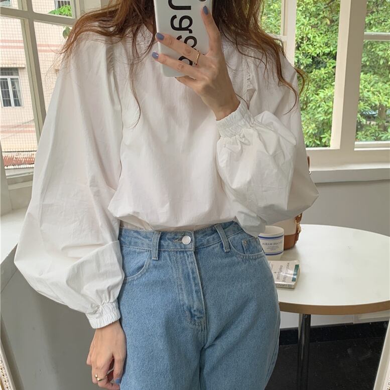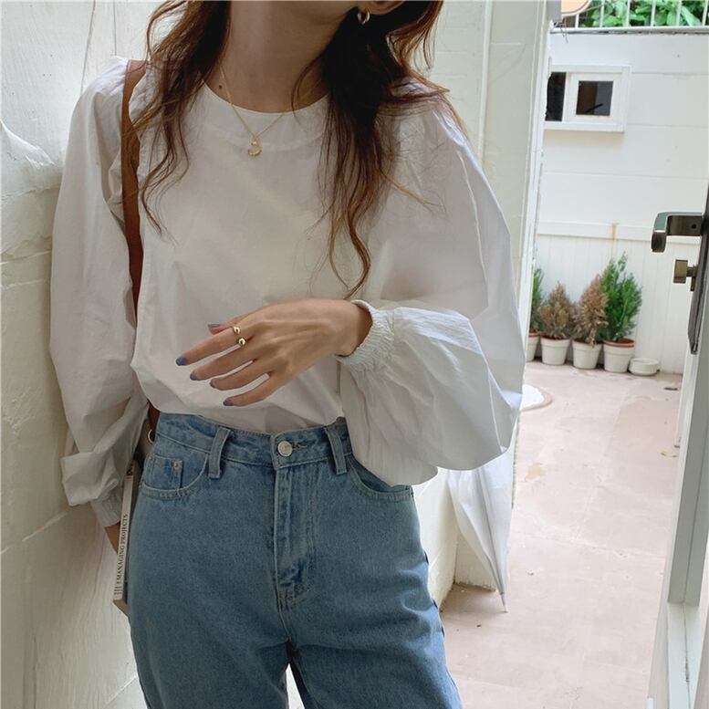キュートでフェミニンな一枚、ボリュームスリーブシャツの登場です。ラウンドネックとボリュームスリーブが女性らしさを引き立て、シアーシャツの透け感が上品な印象を与えます。日常のカジュアルな場面から仕事やデートまで、オンオフ兼用で活躍できるアイテムです。