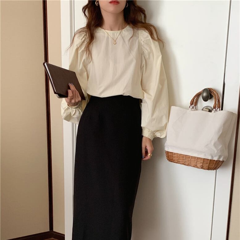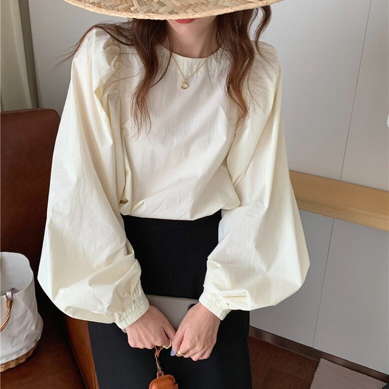 ボリュームスリーブシャツ レディース トップス シャツ プルオーバー 長袖 ラウンドネック ボリュームスリーブ バルーンスリーブ シアーシャツ 無地 オシャレ シアー シンプル 可愛い キレイめ 上品 フェミニン カジュアル デイリー おでかけ 仕事 オンオフ兼用 普段着 万能 スマート 細見え スタイルアップ 高見え 新鮮 主役級 鮮度アップ 上級者 軽やか ゆったり 体型カバー インスタ映え トレンド アースカラー 通勤 通学 デート エ