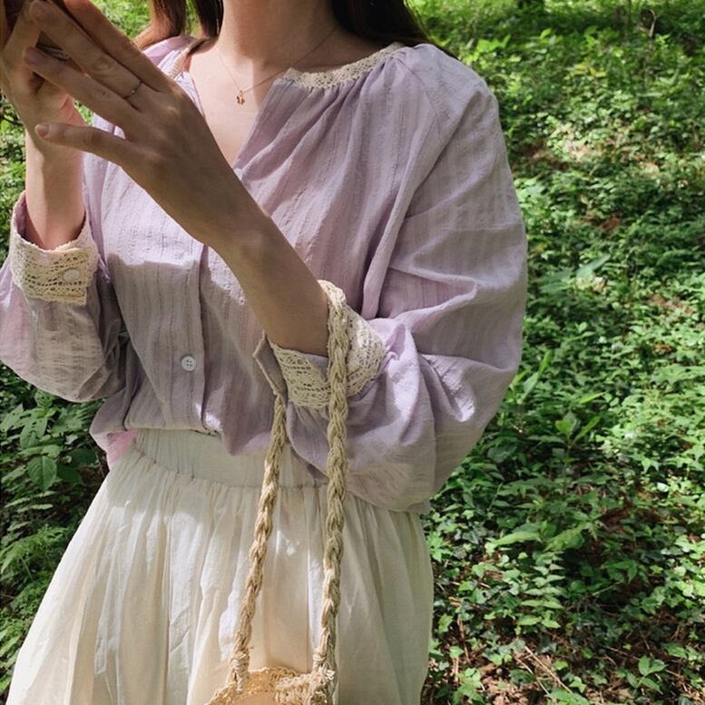 シアーノーカラーシャツ レディース トップス シャツ ブラウス ノーカラー 長袖 シアーシャツ シアーブラウス 袖口レース クルーネック シャツブラウス 薄手 オシャレ シアー シンプル 可愛い キレイめ 上品 フェミニン ハンサム マニッシュ カジュアル デイリー おでかけ オンオフ兼用 普段着 スマート 細見え スタイルアップ 高見え 新鮮 主役級 鮮度アップ 上級者 軽やか ゆったり 体型カバー インスタ映え トレンド アースカラー 通勤