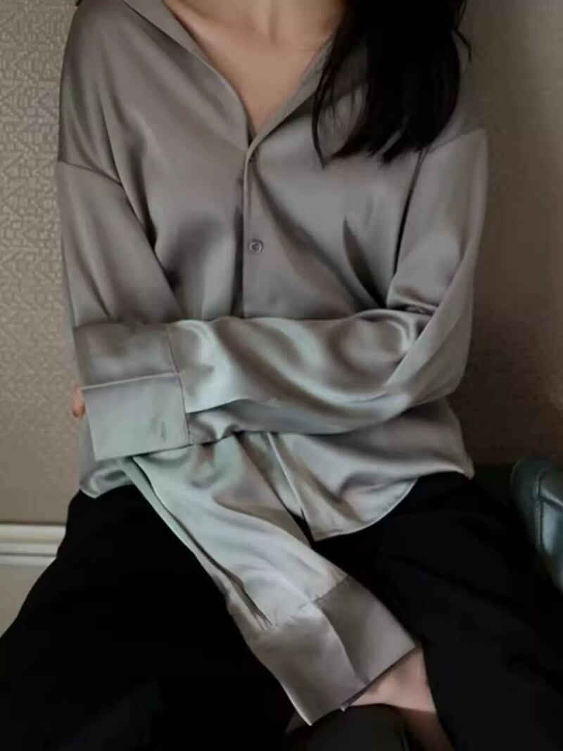 フェミニンでありながら都会的な雰囲気漂う、女性らしい襟付きシャツ。華やかさと上品さを兼ね備え、おしゃれに決めたいオフィスカジュアルやデート、お出かけにぴったりです。さらに、そのシンプルさから普段使いや着回しにも最適で、忙しい女性にも嬉しいアイテムです。