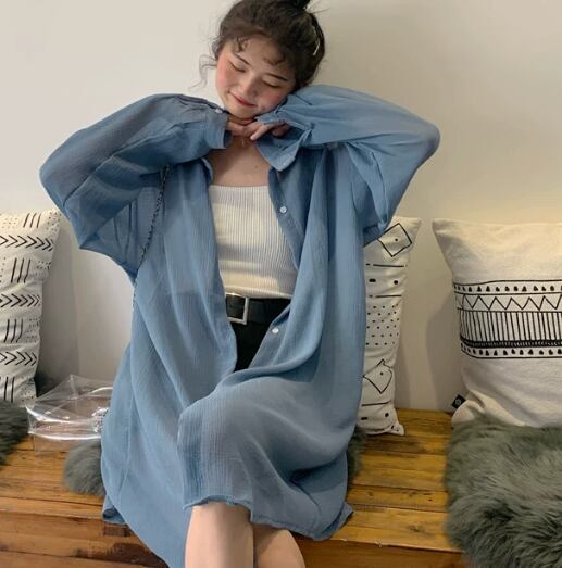 だぼっとしたオーバーサイズが可愛い長袖シャツ。透け感があって生地も薄く涼しげで、暑い夏にもピッタリのアイテムです。冷房対策や日焼け防止のアイテムとしても重宝します。シンプルなので着回し力も抜群。爽やかなカラーも魅力的です。