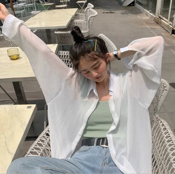 レディース トップス シャツ ミドル丈 長袖 萌袖 襟付き 角襟 前開き 透け感 薄手 かわいい 大人可愛い きれいめ シンプル カジュアル 上品 おしゃれ ラフ ルーズ キュート ナチュラル 高級感 清潔感 爽やか 涼しげ 女性らしい 優しい リラックス 無地 春 夏 10代 20代 30代 40代 50代 60代 デート お出かけ 重ね着 体型カバー 普段使い 着回し 清楚 定番 冷房対策 日除け 日焼け防止 UV対策 ビッグ ゆったり フリーサイズ オーバーサイズ 大きめ ホワイト ブルー グリーン