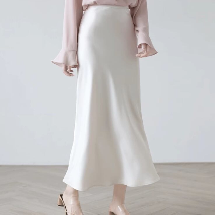 ミモレ丈でスリムなラインが女性らしいシルエットを演出します