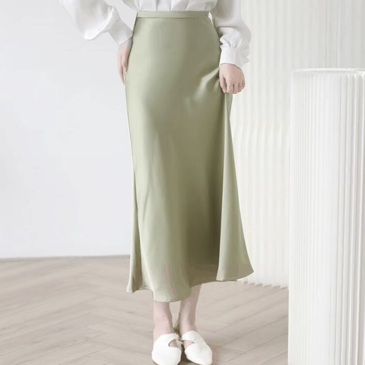 レディース スカート カラースカート フレアスカート ロングスカート ミモレ 7分丈 セミフレア スリム 細身 ハイウエスト 異国風 かわいい 大人可愛い きれいめ シンプル 上品 おしゃれ かっこいい レトロ こなれ感 ラフ 個性的 クール モード系 エレガント モダン 主役級 存在感 フォーマル とろみ感 抜け感 都会的 ベーシック ロマンティック ナチュラル 無地 春 夏 OL デート お出かけ パーティー イベント レストラン モテ 清楚 S M L シルバー アプリコット パール グリーン
