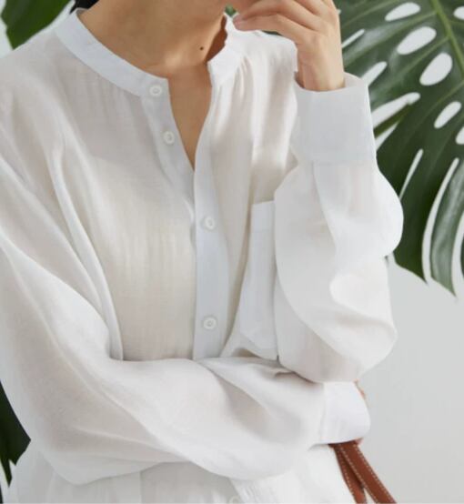 清潔感のあるホワイトの長袖シャツ。チャイナ風のデザインが可愛く、着回し力抜群の一枚です。優しい色味のボトムスを合わせると女性らしくて優しい印象に、ブラックやブラウンなどきりっとした色味を合わせるとハンサムでスマートな印象に。合わせるものによって様々な印象に代わるアイテムです。