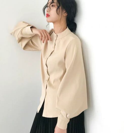 レディース トップス シャツ ミドル丈 長袖 ボリューム袖 ランタンスリーブ スタンドカラー 前開き 起毛 かわいい 大人可愛い きれいめ シンプル カジュアル 上品 おしゃれ かっこいい レトロ ルーズ 個性的 クール エレガント キュート ナチュラル シック 高級感 清潔感 爽やか 女性らしい 優しい 知的 スタイリッシュ 無地 春 秋 会議 MTG ミーティング 20代 30代 40代 50代 オフィス OL デート お出かけ 普段使い 着回し 清楚 S M ホワイト ブラック ベージュ ブルー