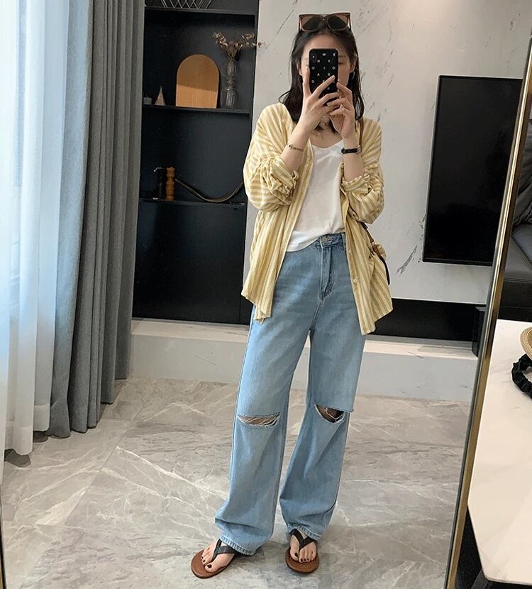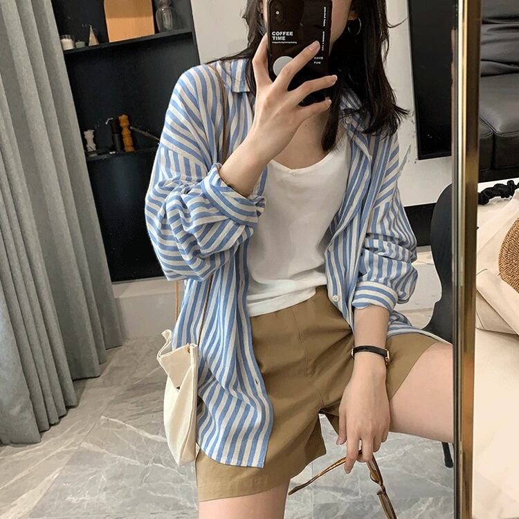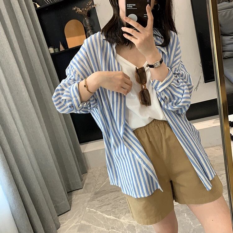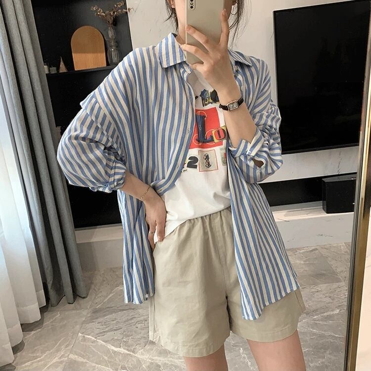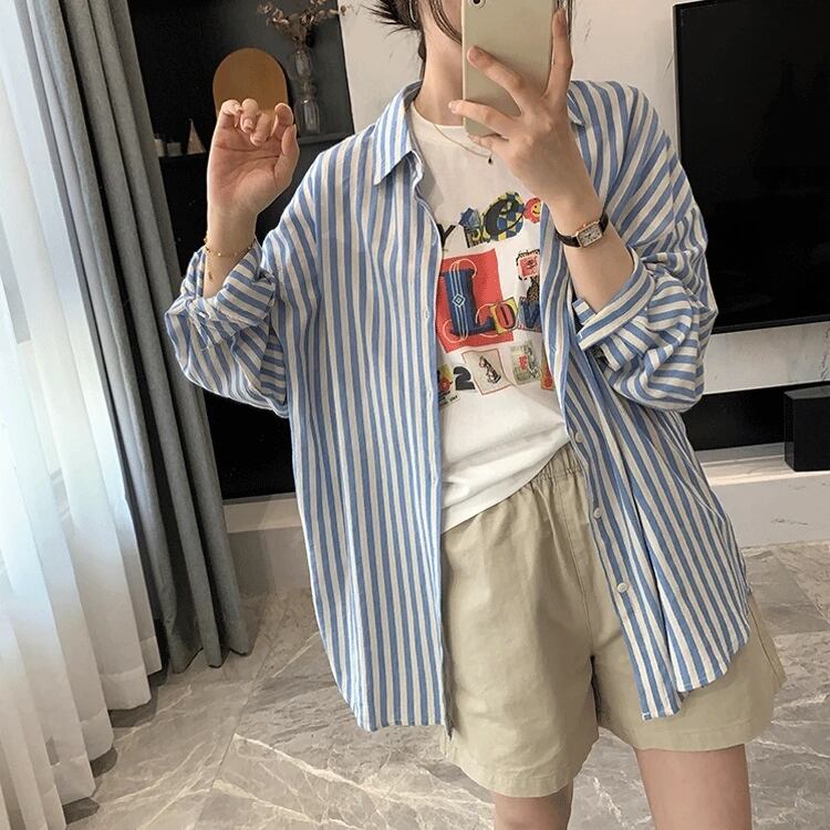カジュアルでありながらも大人可愛いスタイルを演出するストライプ柄のシャツです。ボーイッシュな雰囲気にも合わせやすく、一枚で着ても重ね着にしても楽しめるアイテムです。春から夏、秋までロングシーズン活躍し、デートやお出かけ、アウトドアでの日焼け対策など様々なシーンに対応します。さらに、体型カバーもできるゆったりとした着心地で、動きやすさと涼しさを両立させています。