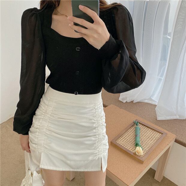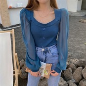 トップス 韓国風 オルチャン 異素材シャツブラウス ブラウス 袖あり 長袖 ふわふわ ふんわり シフォン 透け感 シースルー スクエアネック 美デコルテ 着痩せ パフスリーブ ボリューム袖 バルーン 切り替えデザイン 骨ストレート 大人可愛い シンプル 大人 上品 おしゃれ お洒落 大人女子 こなれ感 モード系 モダン フェミニン 無地 春 秋 冬 デート 休日 韓国 韓国系 オルチャン モテ 定番 XL 2XL 大きいサイズ 大きい 大きめ ビッグサイズ ゆったり ゆる ビック カラバリ 大人カラー