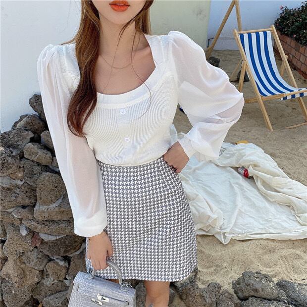 トレンド感たっぷりの韓国風綺麗めブラウス。