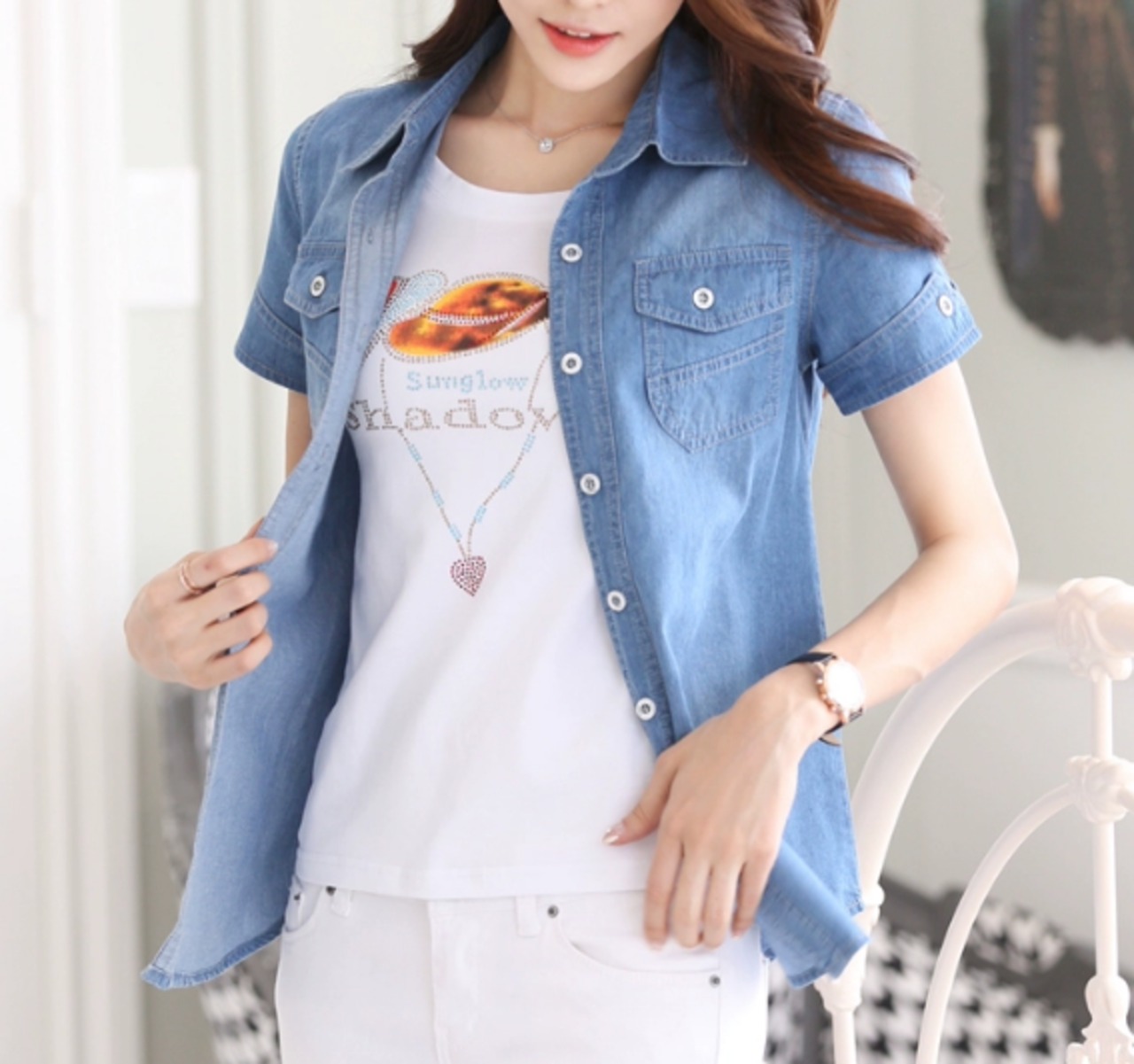 暑い季節にぴったりの涼しげで爽やかなブルーが魅力的なデニムシャツ。いつものコーディネートにふわっと重ねるだけでおしゃれ度がぐっとアップします。スマートな美シルエットも魅力的。パンツスタイルと相性抜群です。