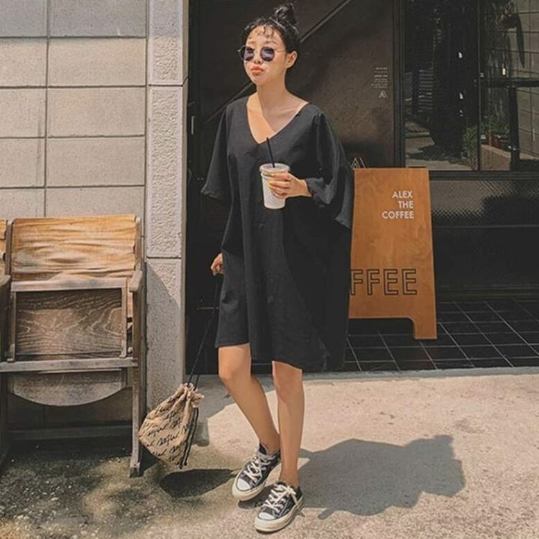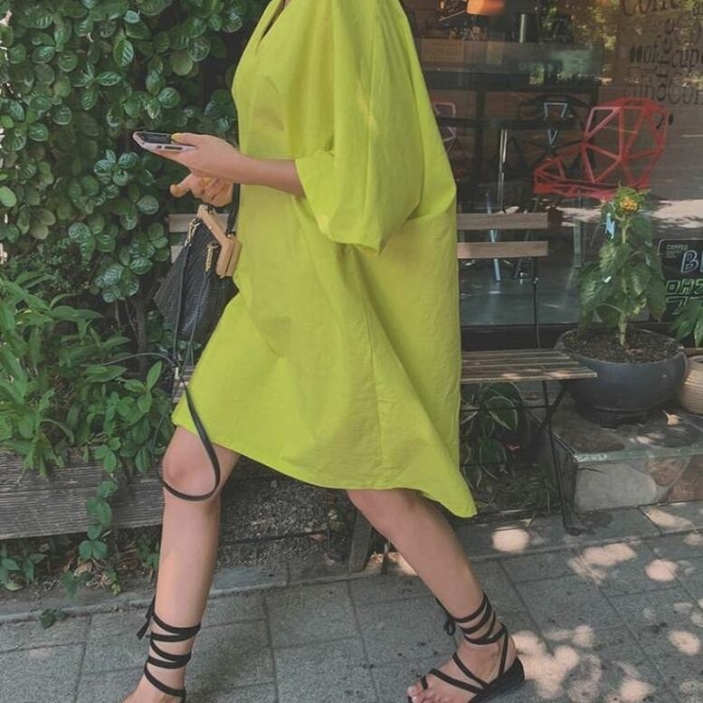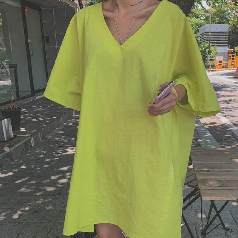 Vネックプルオーバーシャツワンピース レディース ワンピース ミニワンピース シャツワンピース オーバーワンピース プルオーバーワンピース Vネック 半袖 ひざ丈 無地 オシャレ シンプル 可愛い キレイめ 上品 フェミニン マニッシュ カジュアル デイリー おでかけ 普段着 スマート 細見え スタイルアップ 高見え 新鮮 主役級 鮮度アップ 上級者 オーバーサイズ ゆったり 体型カバー インスタ映え トレンド ビタミンカラー 通勤 通学 デート