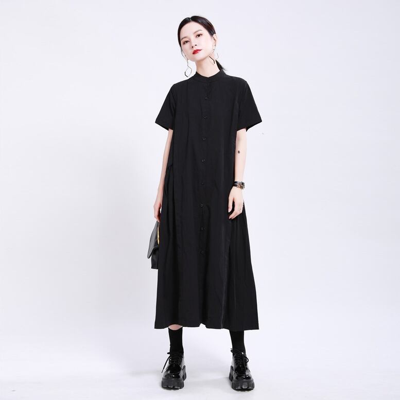 ノーカラーロングシャツワンピース レディース ワンピース ロングワンピース シャツワンピース ノーカラー 半袖 ロング丈 マキシワンピース ノーカラーシャツドレス コットンリネンワンピ 無地 オシャレ シンプル 可愛い キレイめ 上品 フェミニン シック 知的 カジュアル デイリー おでかけ オンオフ兼用 公園コーデ 普段着 王道 スマート 細見え スタイルアップ 高見え 新鮮 鮮度アップ ゆったり 体型カバー インスタ映え トレンド エレガント ガー