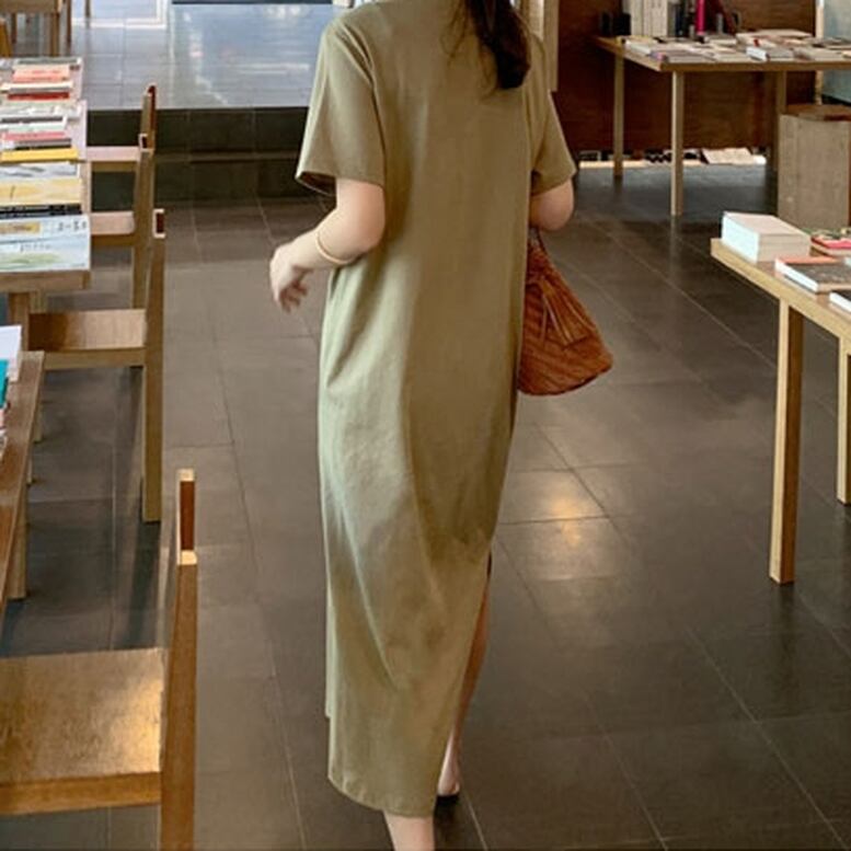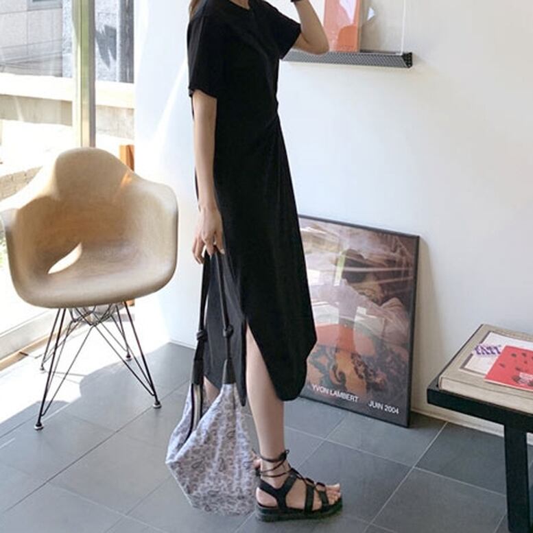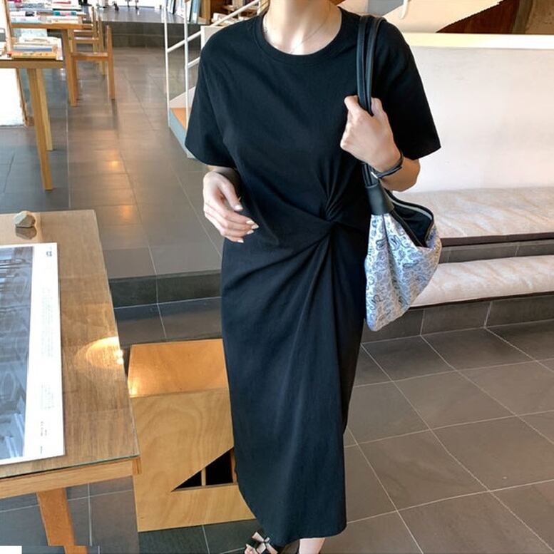 サイドツイストシャツワンピース レディース ワンピース ロングワンピース Tシャツワンピース クルーネック 半袖 スリット入り ツイストワンピース シャツワンピ アシンメトリー Tシャツドレス ロング丈 無地 オシャレ シンプル 可愛い キレイめ 上品 フェミニン カジュアル デイリー おでかけ オンオフ兼用 普段着 ベーシック 万能 スマート 細見え スタイルアップ 高見え 新鮮 主役級 鮮度アップ 動きやすい 軽やか ゆったり 体型カバー インスタ映え
