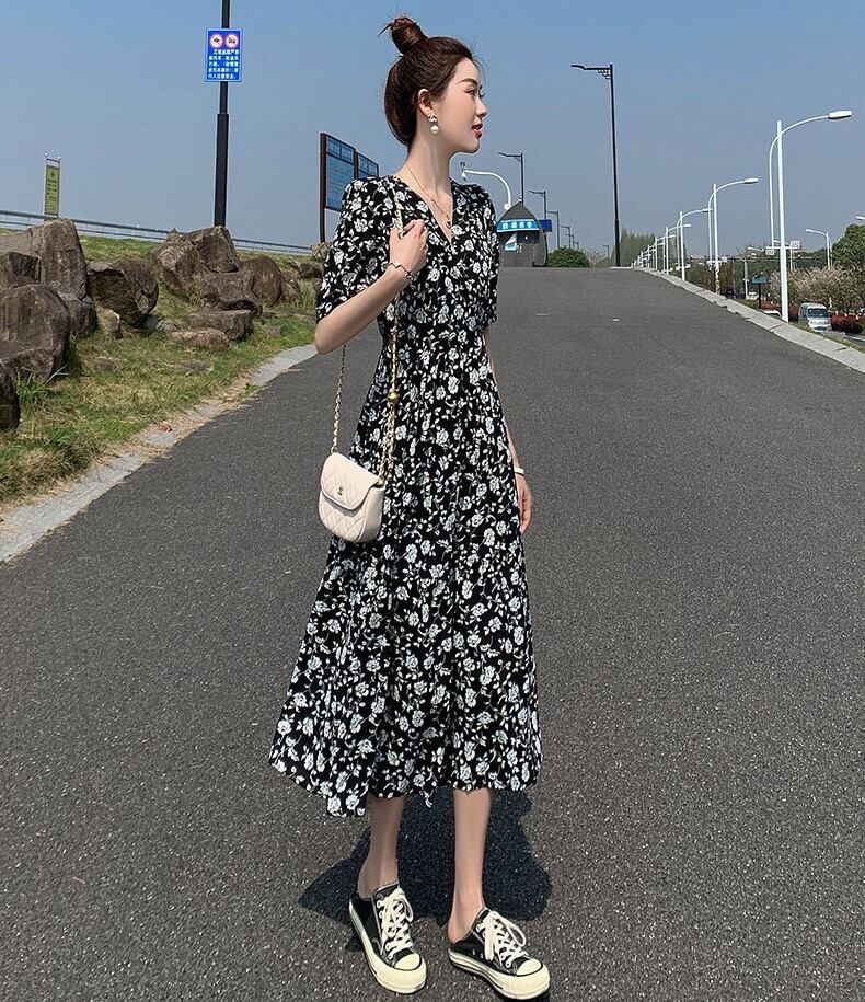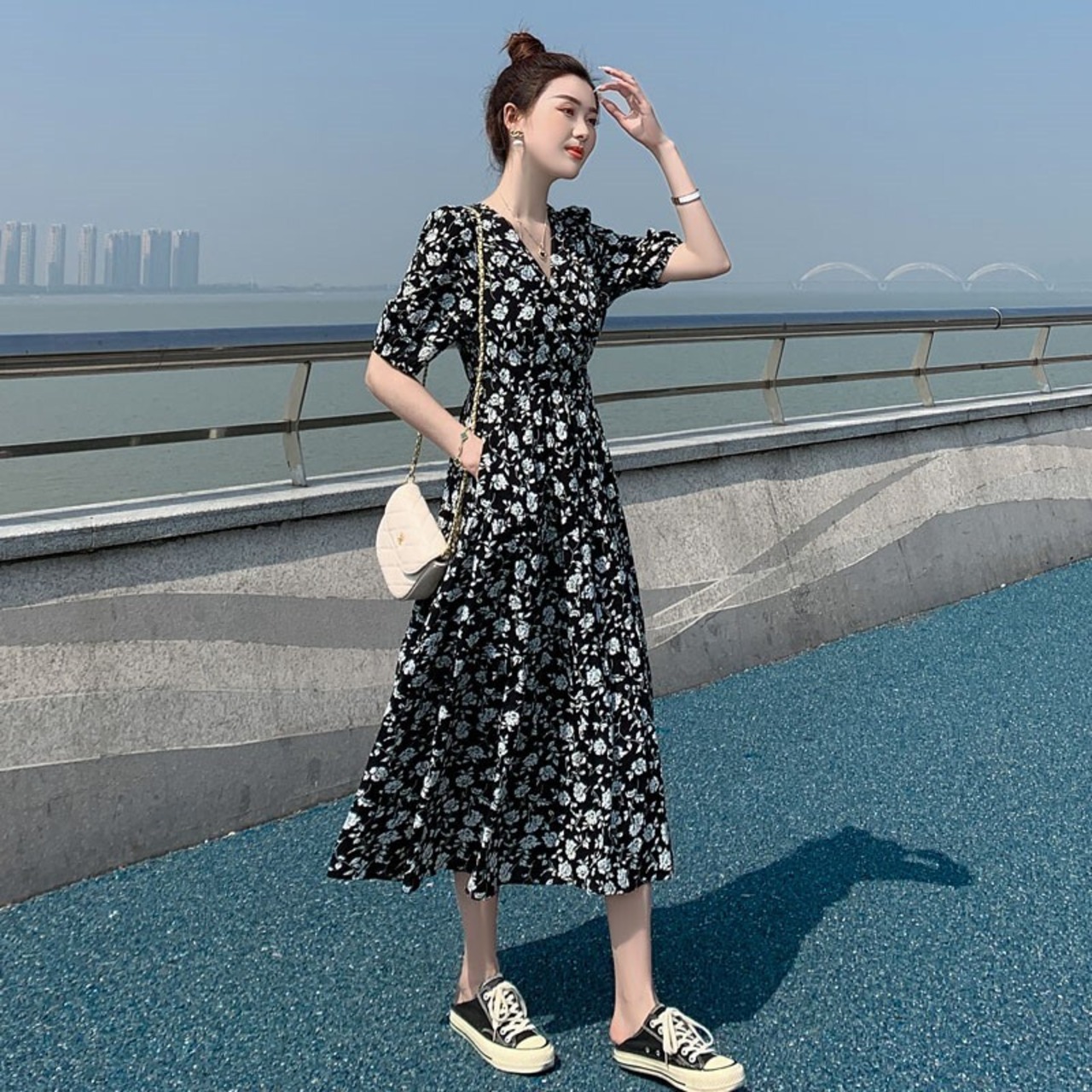フローラルプリント レディース ワンピース 膝下 ミモレ ミディアム丈 5分袖 ボリューム袖 パフスリーブ Vネック カシュクール 襟なし Aライン ウエストリボン ハイウエスト かわいい 大人可愛い きれいめ シンプル カジュアル 上品 おしゃれ エレガント フェミニン 花柄 フラワー 春 夏 ママ 女の子 OL 通勤 学生 学校 通学 デート お出かけ 休日 ショッピング カフェ 重ね着 体型カバー 脚長 普段使い レイヤード M L XL 2XL 3XL 4XL 大きいサイズ ブラック モノトーン