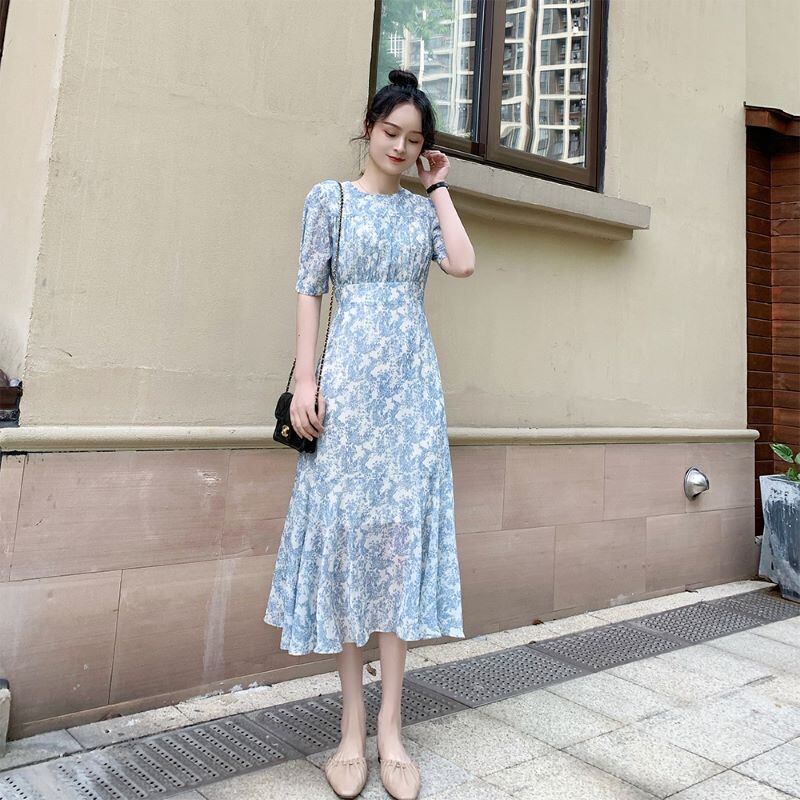 フローラルプリント 胸上ギャザー 裾フレア切り替え レディース ワンピース 膝下 ミモレ ロング 5分袖 袖タック ラウンドネック 襟なし Aライン バックファスナー ウエストリボン バックコンシャス ハイウエスト 透け感 シアー かわいい 大人可愛い きれいめ シンプル カジュアル 上品 おしゃれ エレガント フェミニン 爽やか 花柄 フラワー 春 夏 ママ 女の子 OL 通勤 学生 学校 通学 デート お出かけ 休日 体型カバー 脚長 普段使い モテ 清楚 S M L XL 2XL 大きいサイズ 青