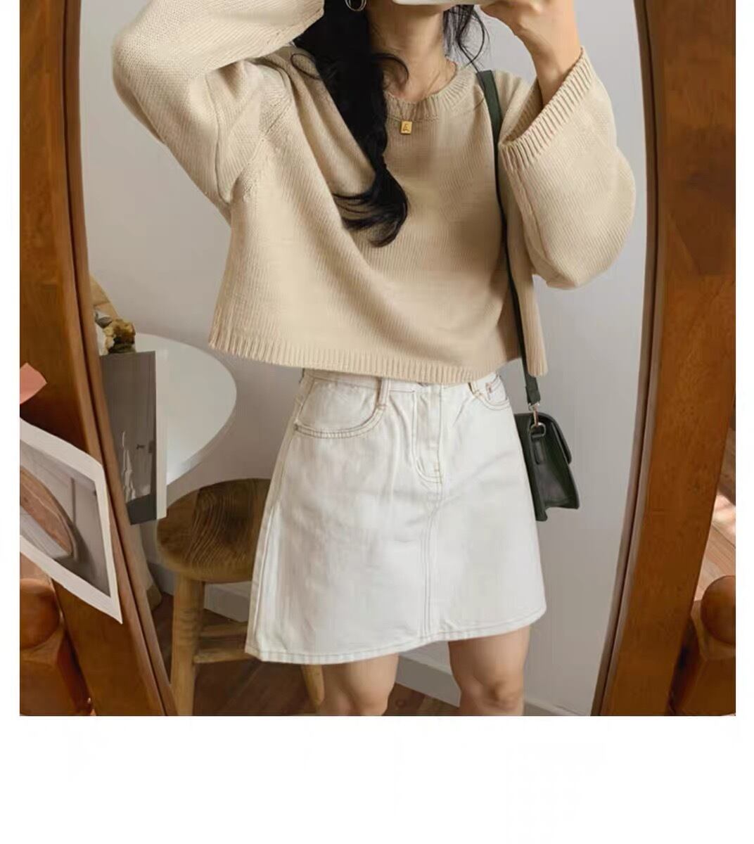 抜け感のある短めスタイルがトレンド感のあるショート丈ニット。
