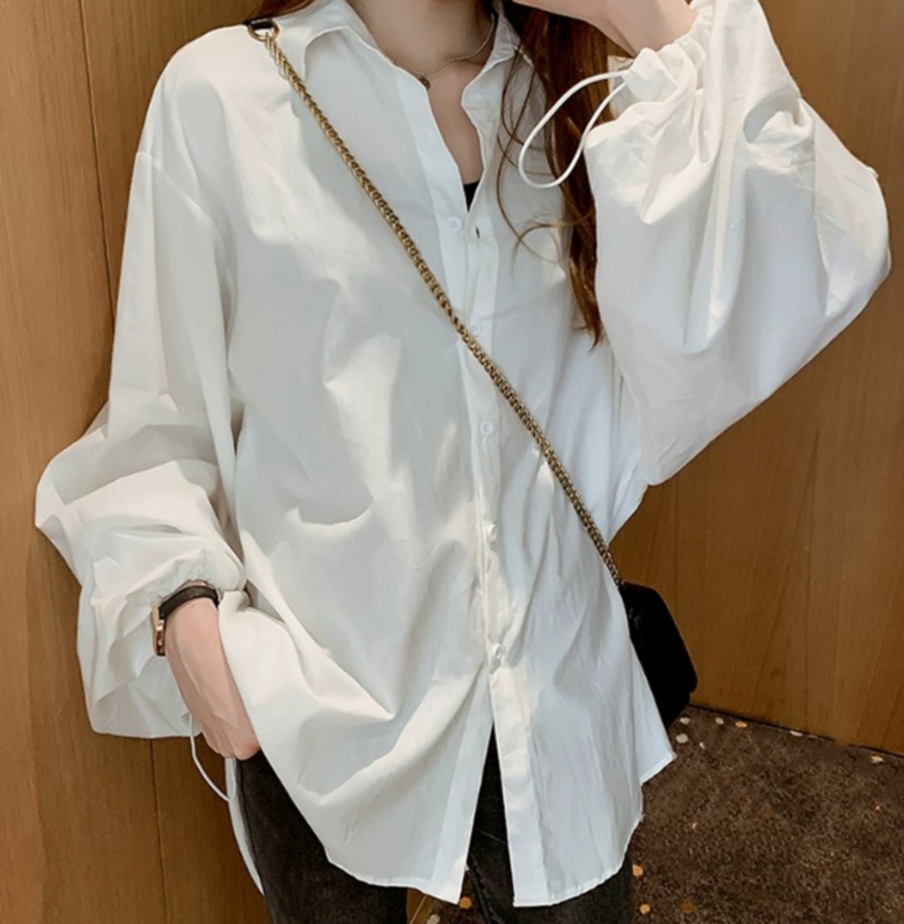 ボリューム感のある袖が可愛いオーバーサイズの長袖シャツ。シックなカーキと清潔感のあるホワイトの二種類展開です。シンプルなので着回し力抜群。ボタンを留めてトップスの主役として着ても可愛いですし、お気に入りのTシャツの上にさらっと羽織っても◎