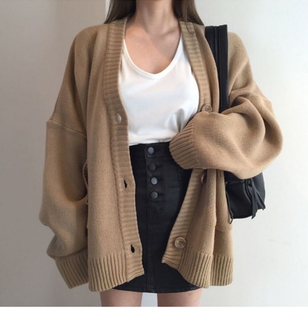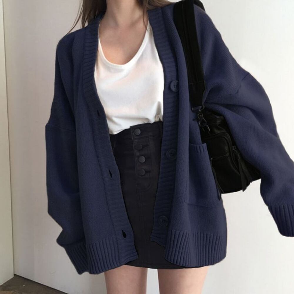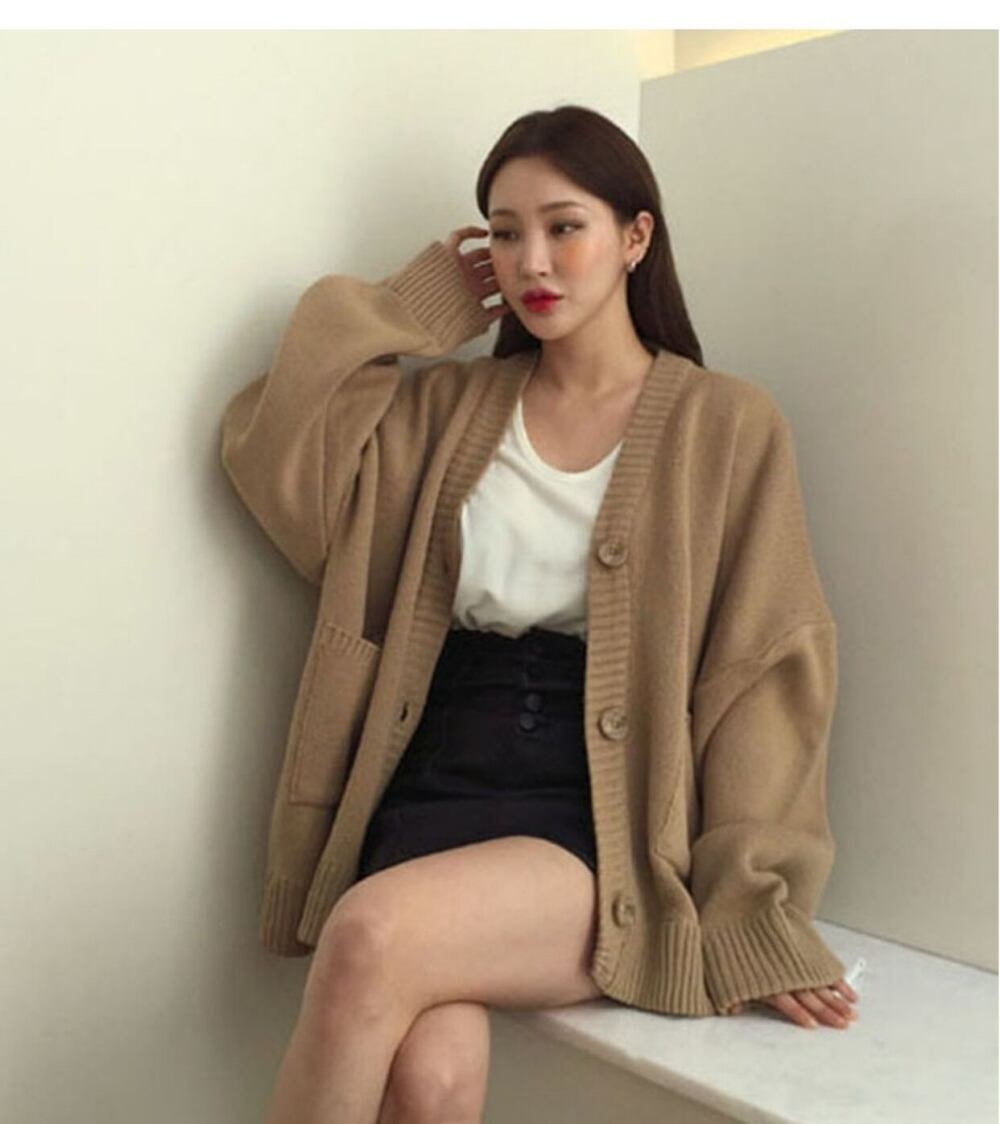ルーズなデザインが可愛いニットカーディガンです。手を覆いつくす程の長い袖があどけない印象を演出します。シンプルなデザインで着回しやすく、幅広いコーディネートに合わせることができます。ルーズなシルエットとゆったりとしたフリーサイズで体型もカバーし、快適な着心地を実現しました。