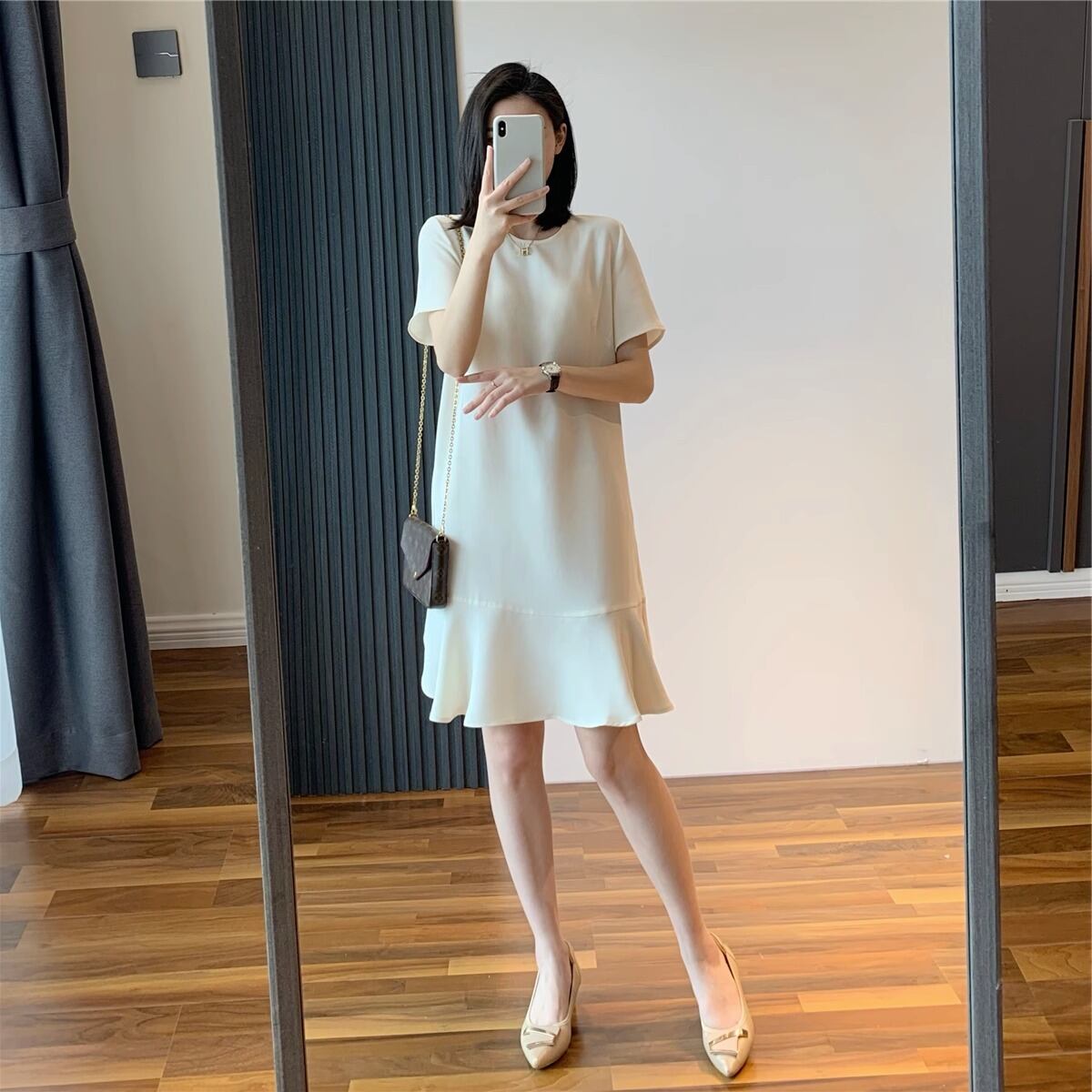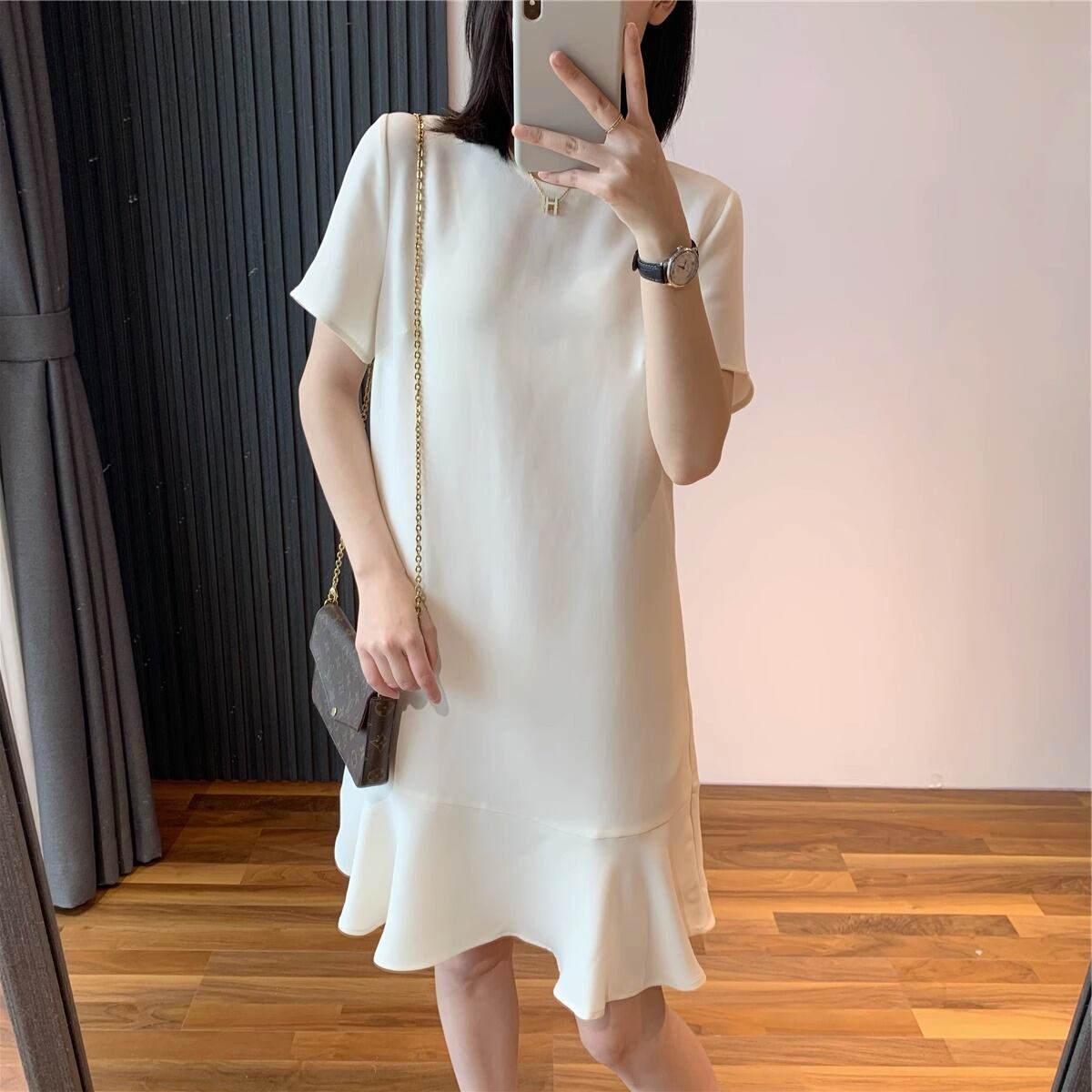 レディース ワンピース マーメイド 膝丈 ミドル丈 ミドル 半袖 Uネック Aライン 裾フリル フリル かわいい 大人可愛い きれいめ シンプル 上品 おしゃれ ガーリー キュート ラブリー ナチュラル エレガント かっこいい フォーマル 大人っぽ 無地 夏 入園式 入学式 卒業式 卒園式 冠婚葬祭 二次会 披露宴 お出かけ 休日 女子会 誕生日パーティー イベント ホテル 発表会 コンサート 定番 スタイルアップ コーデ 普段使い 脚長 S M L 黒 ブラック 白 ホワイト 緑 グリーン 色展開