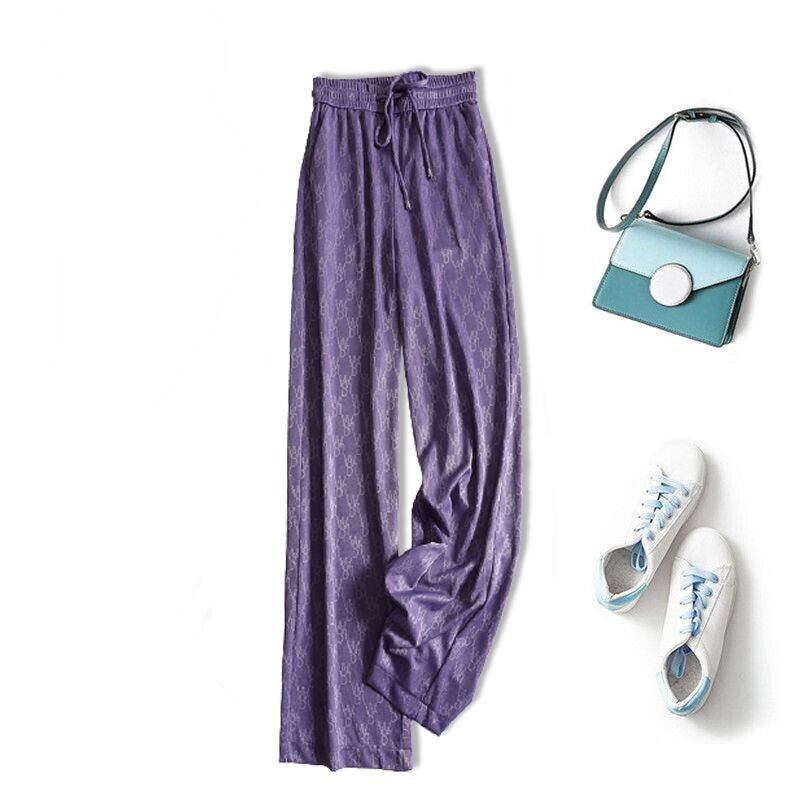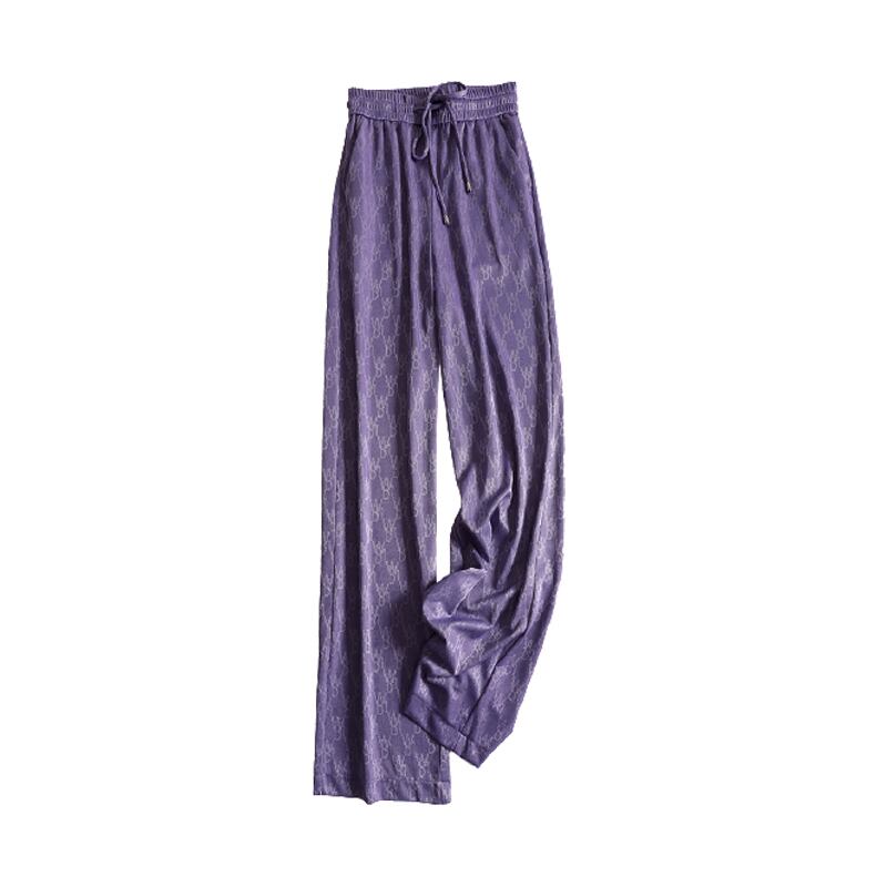 ジャガード ワイドレッグパンツ レディース パンツ ボトムス ストレートパンツ ロング ワイド ストレート ハイウエスト ウエストゴム ドロスト きれいめ シンプル カジュアル 上品 おしゃれ かっこいい こなれ感 エレガント 落ち感 シワになりにくい ロゴ 総柄 春 夏 ママ 女の子 学生 学校 通学 デート お出かけ 旅行 女子会 休日 ショッピング 韓国 オルチャン コーデ 楽ちん 体型カバー 脚長 普段使い 着回し M L XL 2XL 3XL 大きいサイズ 黒 ブラック 紫 パープル ベージュ