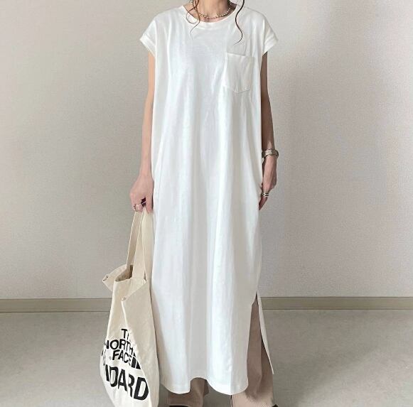 レディース ワンピース マキシ アンクル丈 半袖 フレンチスリーブ ラウンドネック ストレート Iライン スリット サイドスリット 大人可愛い シンプル カジュアル おしゃれ かっこいい こなれ感 ラフ メンズライク ボーイッシュ ルーズ クール キュート ナチュラル シック 清潔感 爽やか スタイリッシュ 無地 夏 ママ 20代 30代 40代 50代 ミセス OL デート お出かけ 楽ちん 体型カバー 普段使い 着回し ビッグ ゆったり フリーサイズ オーバーサイズ 大きめ ホワイト ブラック
