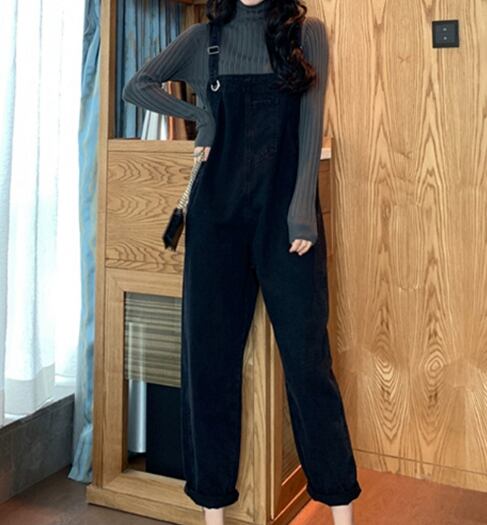 ゆったりシルエットが可愛いオーバーオール。シックなカラーなので着回し力抜群です。ボーダーなどの柄物トップスとも相性抜群ですし、ハイネックのニットを合わせてもキュート。帽子やリュックを合わせてカントリー風コーデを楽しんでも◎