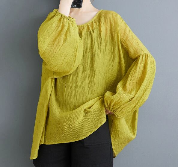 レディース トップス シャツ プルオーバー ミドル丈 長袖 ボリューム袖 ラウンドネック ワイド 透け感 シースルー 薄手 かわいい 大人可愛い シンプル カジュアル ラフ ルーズ キュート ナチュラル シック 清潔感 爽やか 涼しげ 優しい 無地 春 夏 ママ 20代 30代 40代 50代 ミセス デート お出かけ 重ね着 楽ちん 体型カバー 普段使い 着回し 冷房対策 日除け 日焼け防止 UV対策 ビッグ ゆったり フリーサイズ オーバーサイズ 大きめ ホワイト ブラック ベージュ グリーン