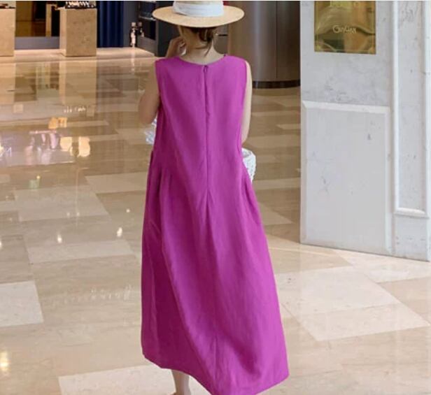 レディース ワンピース ロング 袖なし ノースリーブ ラウンドネック リネン コットン かわいい 大人可愛い シンプル カジュアル 上品 おしゃれ ラフ ルーズ クール エレガント キュート ナチュラル シック 清潔感 爽やか 涼しげ 女性らしい リラックス 無地 夏 20代 30代 40代 50代 デート お出かけ イベント リゾート 旅行 海 レストラン ビーチ 女子会 休日 バカンス ショッピング コンサート ライブ お祭り 花火大会 双子 楽ちん 普段使い S M L XL ゆったり パープル