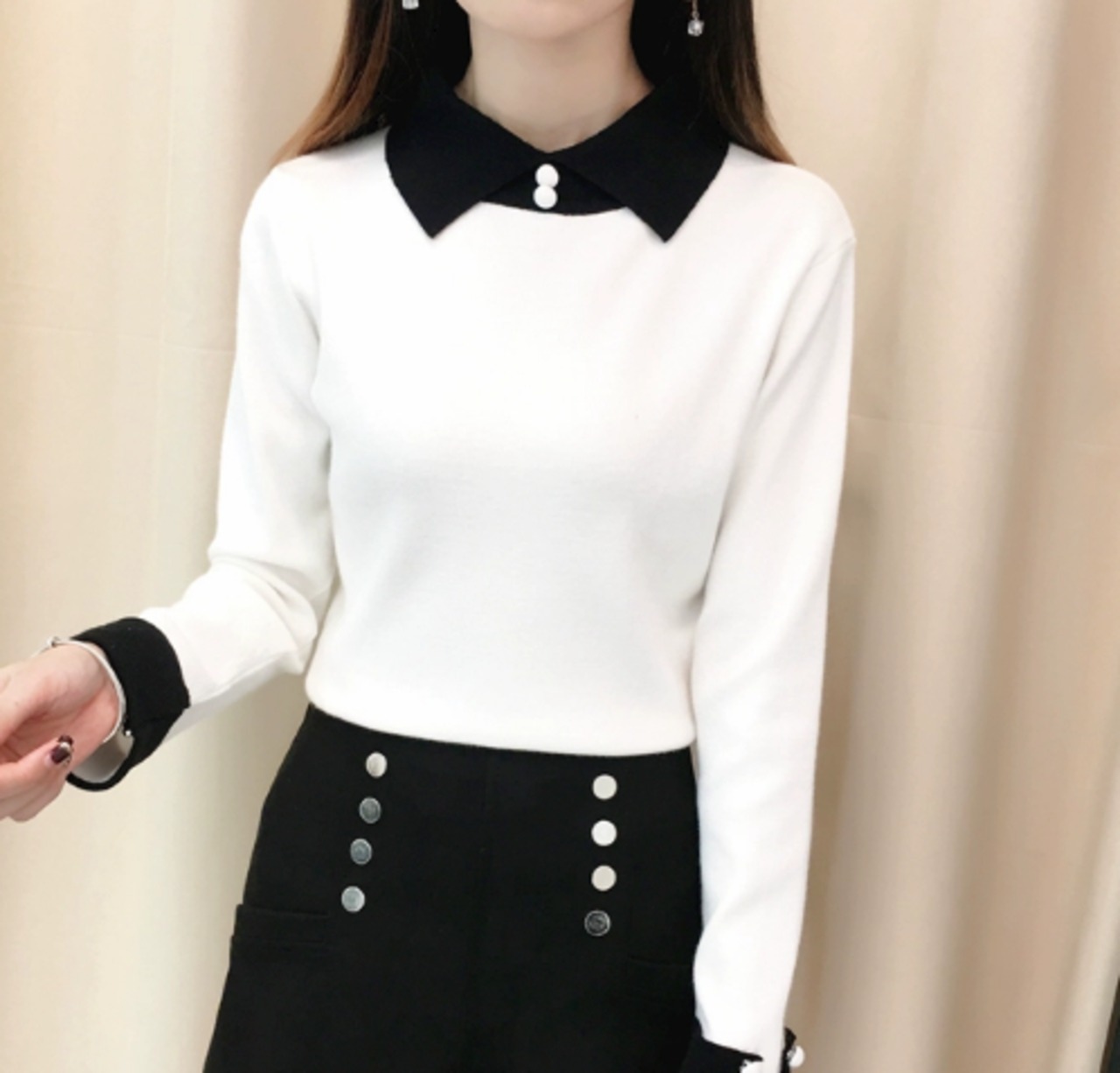 重ね着風 フェイクレイヤード レディース トップス ニット セーター ミドル丈 長袖 襟付き 角襟 異国風 切り替えデザイン バイカラー かわいい 大人可愛い きれいめ カジュアル 上品 おしゃれ かっこいい ガーリー クール エレガント キュート ラグジュアリー クラシカル シック 高級感 芸術的 知的 スタイリッシュ 春 秋 10代 20代 30代 40代 デート お出かけ 旅行 レストラン 女子会 ショッピング 普段使い 着回し モテ 清楚 フリーサイズ ホワイト ブラック ブラウン アプリコット