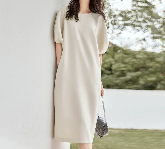 レディース ワンピース ロング 半袖 ボリューム袖 ラウンドネック 薄手 大人可愛い きれいめ シンプル カジュアル 上品 おしゃれ かっこいい こなれ感 ラフ ガーリー ルーズ クール エレガント ナチュラル シック 高級感 清潔感 爽やか 女性らしい 優しい 知的 リラックス 無地 夏 ママ 30代 40代 50代 60代 ミセス OL デート お出かけ リゾート レストラン 楽ちん 体型カバー 普段使い 清楚 S M L XL ビッグ ゆったり オーバーサイズ 大きめ オフホワイト ネイビー