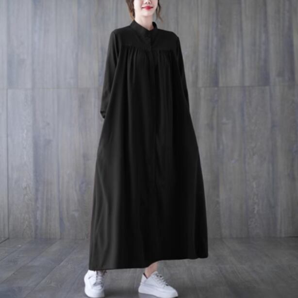 レディース スカート ワンピース シャツワンピ 前開き ロングスカート ロング 丈長 長袖 萌袖 スタンドカラー ワイド オーバーサイズ 異国風 ボタン 薄手 かわいい 大人可愛い きれいめ シンプル カジュアル 上品 おしゃれ かっこいい レトロ アジアン こなれ感 ラフ ルーズ 個性的 モダン 主役級 存在感 とろみ感 抜け感 ラブリー キュート ベーシック ナチュラル 無地 春 秋 ママ マタニティ デート お出かけ 休日 カフェ コーデ 楽ちん 体型カバー 普段使い ゆったり ゆる フリーサイズ
