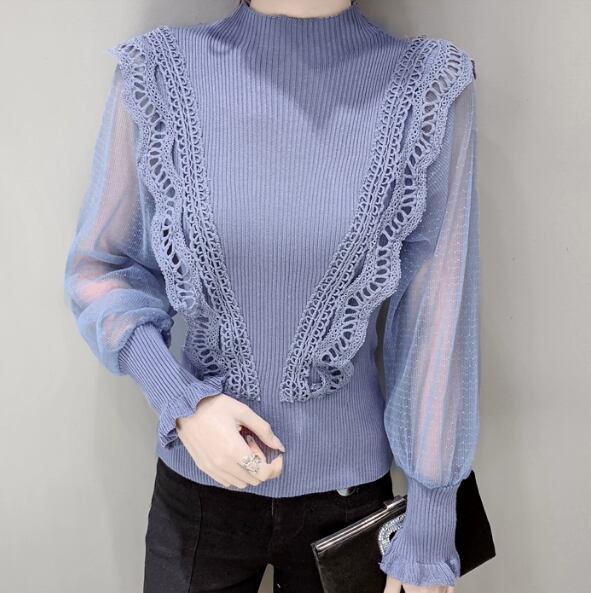 重ね着風 レディース トップス ニット セーター ミドル丈 長袖 ハイネック フェミニン レース 刺繍 フリル 透け感 異国風 切り替えデザイン ストレッチ 伸縮性 かわいい 大人可愛い カジュアル 上品 おしゃれ ガーリー 個性的 クール エレガント 存在感 キュート ラグジュアリー シック 高級感 芸術的 スタイリッシュ 秋 10代 20代 学生 デート お出かけ イベント 旅行 レストラン 休日 ショッピング 普段使い 着回し モテ S M ホワイト ブラック ブルー パープル