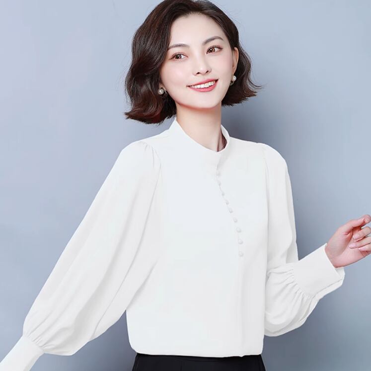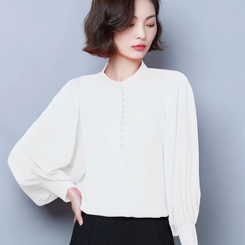レディース トップス シャツ ブラウス 長袖 パフスリーブ スタンドカラー 細身 シフォン 異国風 ボタン 薄手 大人可愛い きれいめ シンプル 上品 おしゃれ かっこいい レトロ アジアン エキゾチック こなれ感 ルーズ 個性的 モード系 エレガント モダン 主役級 存在感 フォーマル とろみ感 抜け感 ラブリー 都会的 ベーシック ロマンティック ナチュラル 無地 春 秋 デート 婚活 楽ちん 清楚 M L XL 2XL 3XL 4XL 大きいサイズ ビッグ ゆったり ゆる ホワイト レッド パープル
