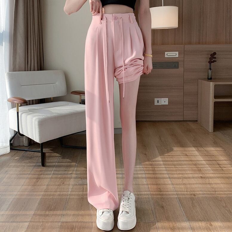 ドロストストレートパンツ レディース ボトムス パンツ ストレートパンツ ウエスト紐 ワイドパンツ リラックスパンツ スーツパンツ ウエストゴム 無地 オシャレ シンプル 可愛い キレイめ 上品 フェミニン シック 知的 ハンサム マニッシュ カジュアル デイリー おでかけ オンオフ兼用 公園コーデ アウトドア 普段着 定番 ベーシック 万能 機能性 スマート 細見え スタイルアップ 主役級 鮮度アップ 美脚見え 脚長 動きやすい 軽やか ゆっ