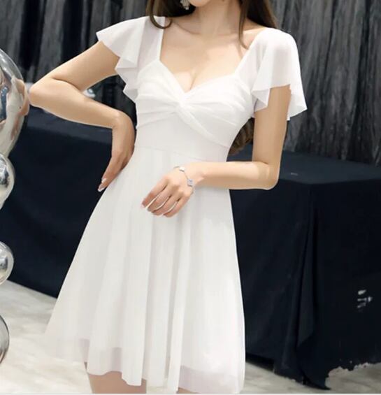 レディース ドレス パーティー ステージ 舞台 キャバ ダンス 衣装 演劇 クラブ ナイトクラブ ミニ 半袖 フレアスリーブ Vネック タイト スリム フレア 細身 Aライン バックコンシャス 透け感 異国風 背中開き 可愛い シンプル カジュアル 大人可愛い キュート ガーリー 存在感 セクシー 華やか 女性らしい フェアリー 無地 イベント ホテル レストラン ドライブ 夜景 高見え あざとかわいい 小悪魔 モテ 10代 20代 夏 フリーサイズ イエロー ピンク ホワイト ブラック レッド ブルー