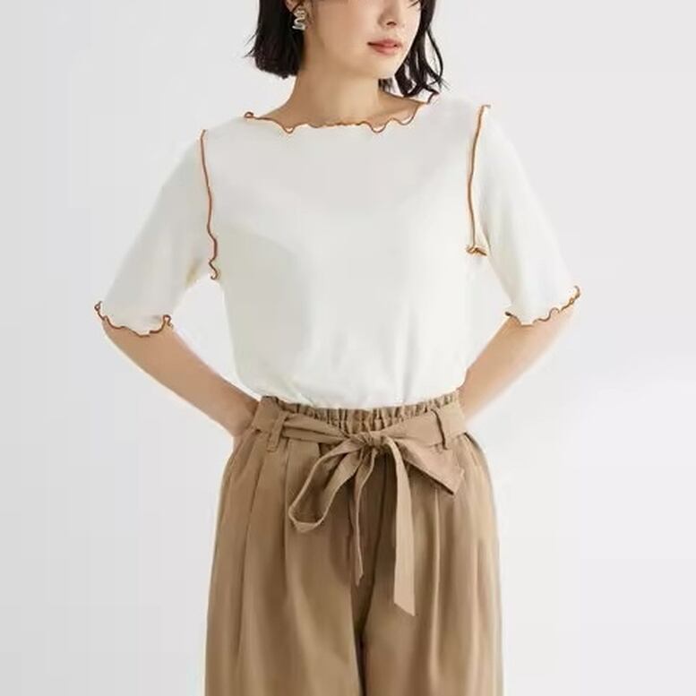 メロウリブカットソー レディース トップス カットソー インナーシャツ メロウ 半袖 ラウンドネック リブニット サマーニット シャツ オシャレ シンプル 可愛い キレイめ 上品 フェミニン カジュアル デイリー おでかけ オンオフ兼用 公園コーデ アウトドア 普段着 ベーシック 万能 機能性 スマート 細見え スタイルアップ 高見え 新鮮 主役級 鮮度アップ 動きやすい 軽やか ゆったり 体型カバー インスタ映え トレンド 通勤 通学 デー