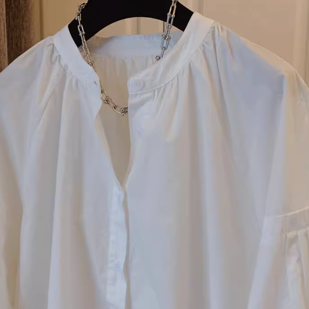 レディース トップス シャツ ブラウス 前開き 長袖 ボリューム袖 パフスリーブ ラウンドネック 襟なし フェミニン 異国風 ボタン 薄手 かわいい 大人可愛い きれいめ シンプル カジュアル 上品 おしゃれ かっこいい レトロ アジアン こなれ感 ラフ ルーズ 個性的 クール エレガント 主役級 存在感 とろみ感 抜け感 ラブリー キュート 都会的 ベーシック ナチュラル 無地 春 秋 デート お出かけ レストラン 女子会 休日 カフェ 体型カバー 普段使い 着回し モテ 清楚 S M L XL 2XL