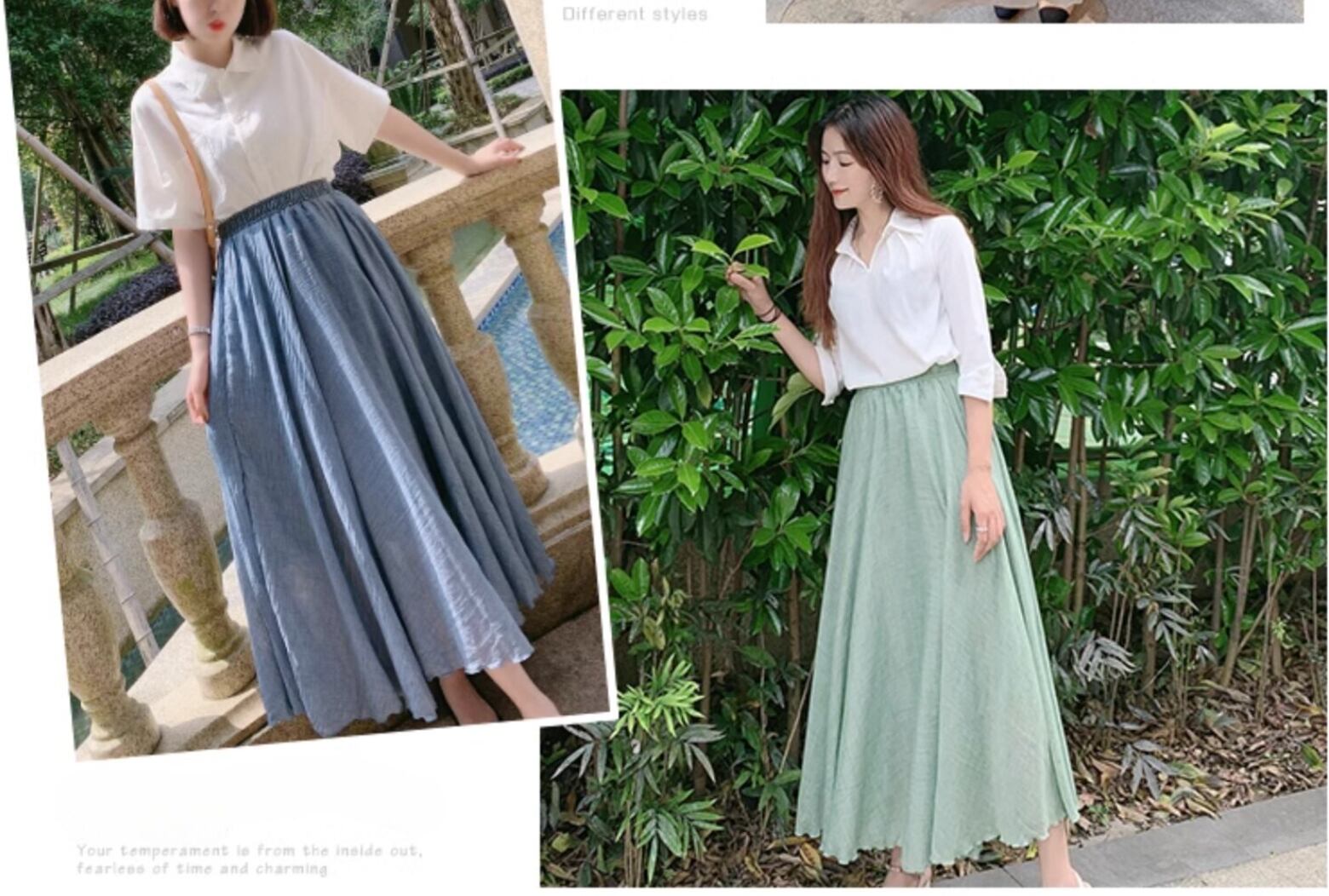 レディース スカート ロング ふんわり フレア Aライン フェミニン ウエストゴム 薄手 リネン コットン かわいい 大人可愛い きれいめ シンプル カジュアル 上品 おしゃれ レトロ ラフ ガーリー ルーズ エレガント 無地 春 夏 秋 オフィス ビジネス OL 通勤 デート お出かけ お泊まり パーティー イベント リゾート 旅行 海 プール ビーチ 公園 女子会 休日 バカンス 韓国 コーデ 楽ちん 体型カバー 普段使い 着回し ゆったり ゆる フリーサイズ ホワイト ブラック ブルー グリーン