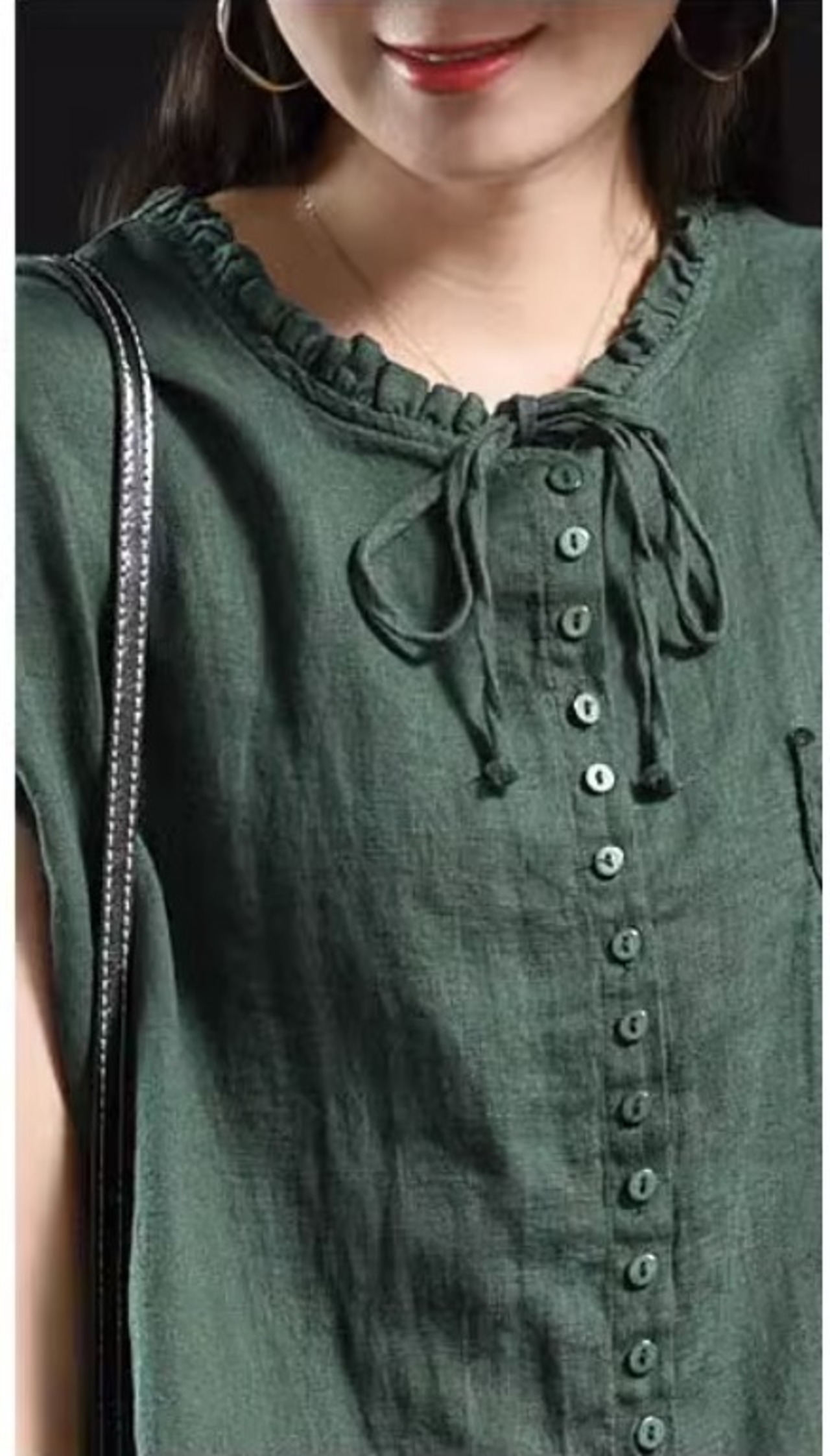 フロント多ボタン アンバランスヘム レディース トップス ブラウス ミディアム丈 フレンチスリーブ クルーネック 襟付き フリル襟 Aライン 胸ミニポケット 首元リボン かわいい 大人可愛い シンプル カジュアル 上品 おしゃれ こなれ感 キュート ナチュラル 無地 夏 ママ 女の子 学生 学校 通学 デート お出かけ 公園 女子会 休日 韓国 オルチャン コーデ 楽ちん 体型カバー 普段使い 着回し M L XL 2XL 3XL 大きいサイズ ゆったり 白 ホワイト ベージュ 緑 グリーン カラバリ