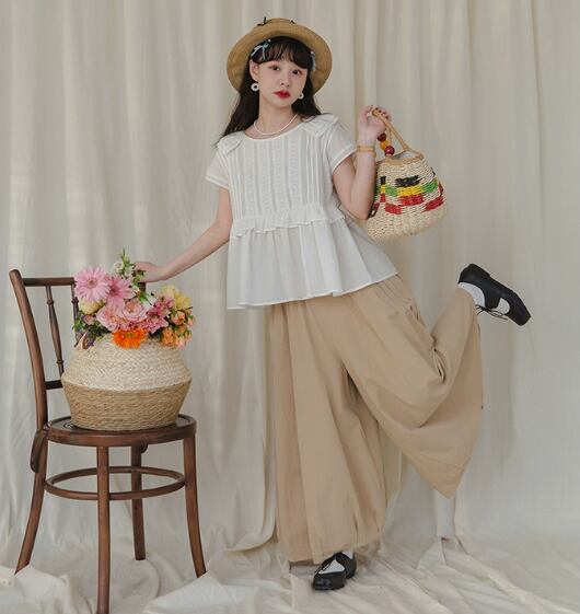 シンプルでありながら個性的なデザインで、大人可愛い雰囲気を演出します。そのワイドなシルエットは、足もとを美しく見せてくれます。自然な着こなしを求める方には、ナチュラルカラーがおすすめです。また、レトロな雰囲気を楽しみたい方には、ヴィンテージライクなカーキーやダークグレーがお似合いです。