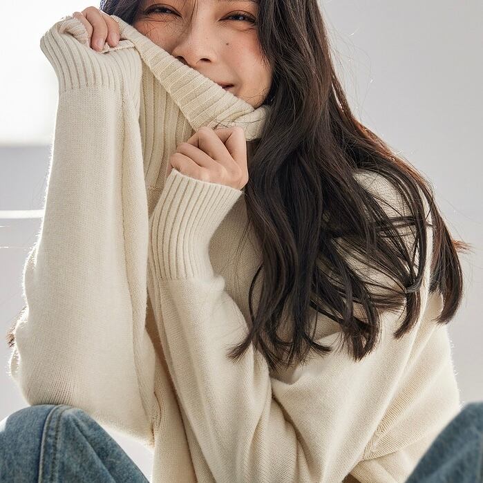 タートルネックとスリット入りのデザインが洗練された印象を与え、これ一枚で大人のカジュアルスタイルが簡単に出来ちゃいます。
