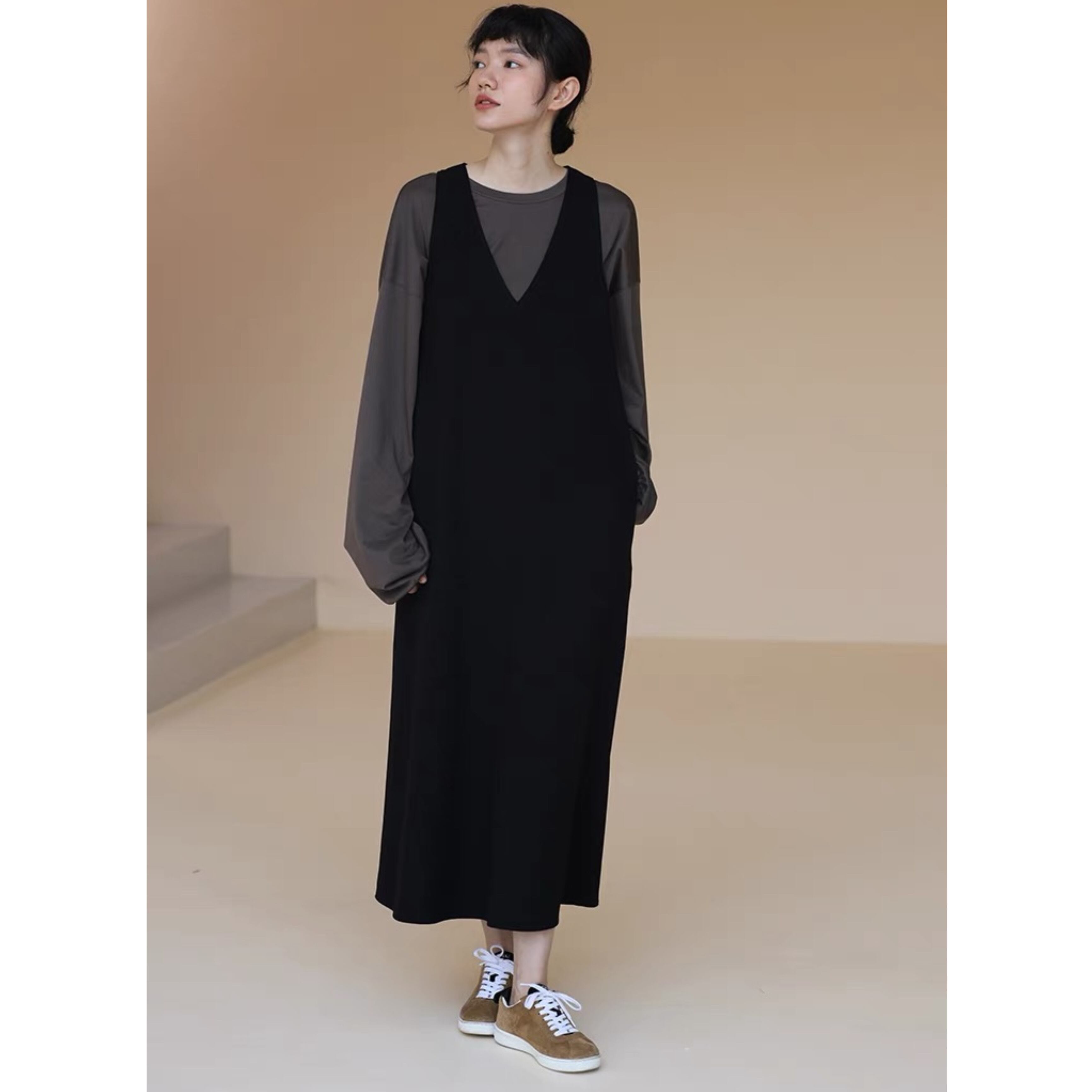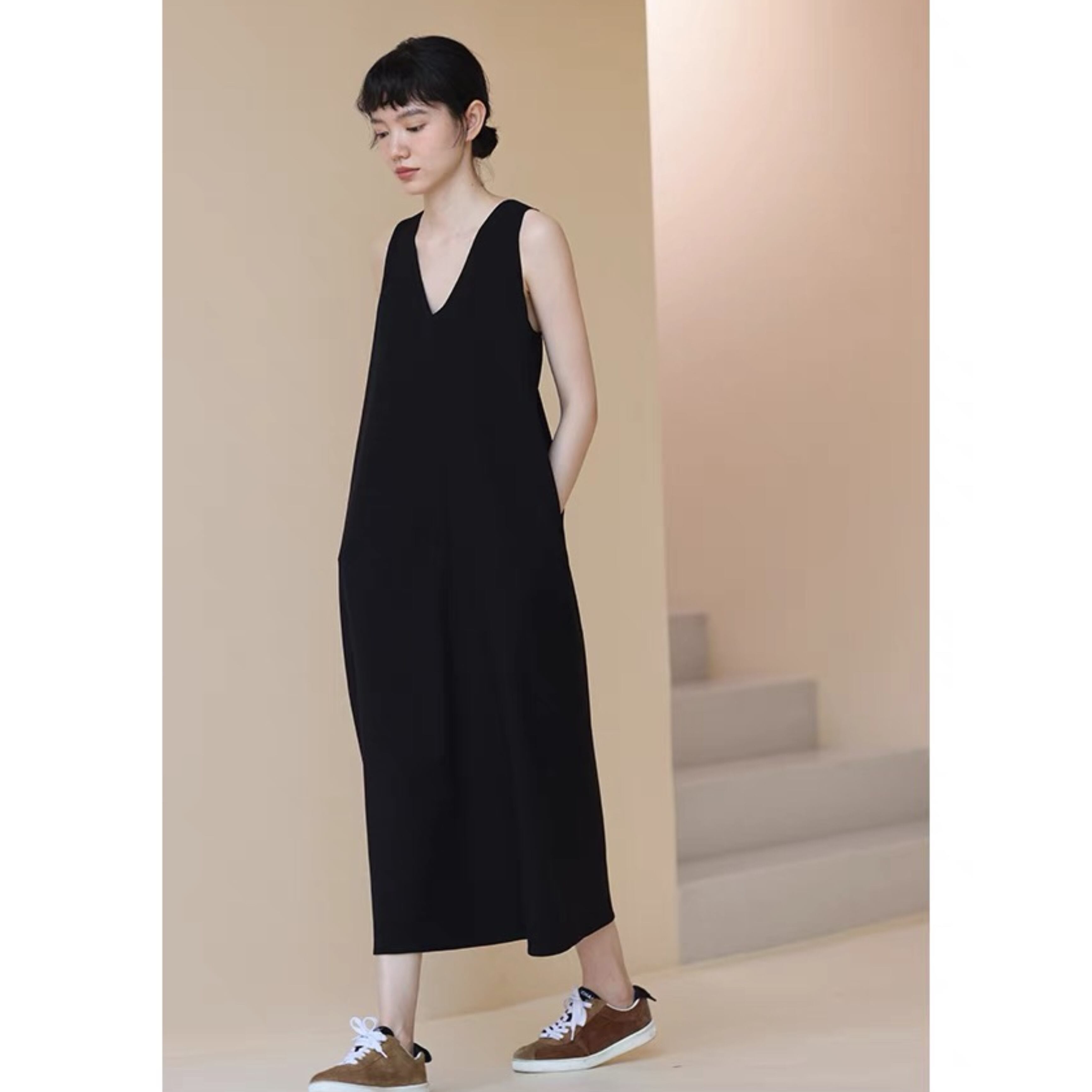 ワンピース 韓国風 オルチャン Vネック ジャンスカ ジャンパースカート フレアワンピ シャツワンピ ロング ミモレ丈 袖なし ノースリーブ ストレート Aライン 大人可愛い きれい シンプル カジュアル 大人 上品 おしゃれ お洒落 かっこいい 大人女子 大人カジュアル クール セクシー モダン 着回し 主役級 春 夏 秋 冬 シーズンレス オールシーズン サイズ展開 レディース デート お出かけ 女子会 休日 韓国 韓国系 ファッション コーデ コーディネート スタイル モテ ブラックコーデ