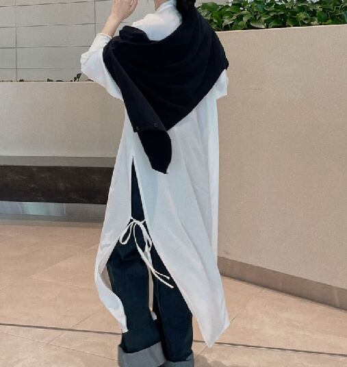 レディース ワンピース シャツワンピ ロング 長袖 スタンドカラー リボン スリット 異国風 かわいい 大人可愛い シンプル カジュアル おしゃれ かっこいい こなれ感 ラフ ルーズ 個性的 クール 存在感 キュート ナチュラル シック 高級感 清潔感 爽やか スタイリッシュ ハンサム 無地 春 秋 10代 20代 30代 40代 50代 デート お出かけ イベント 旅行 重ね着 体型カバー 普段使い 着回し レイヤード ビッグ ゆったり フリーサイズ オーバーサイズ 大きめ ホワイト アプリコット